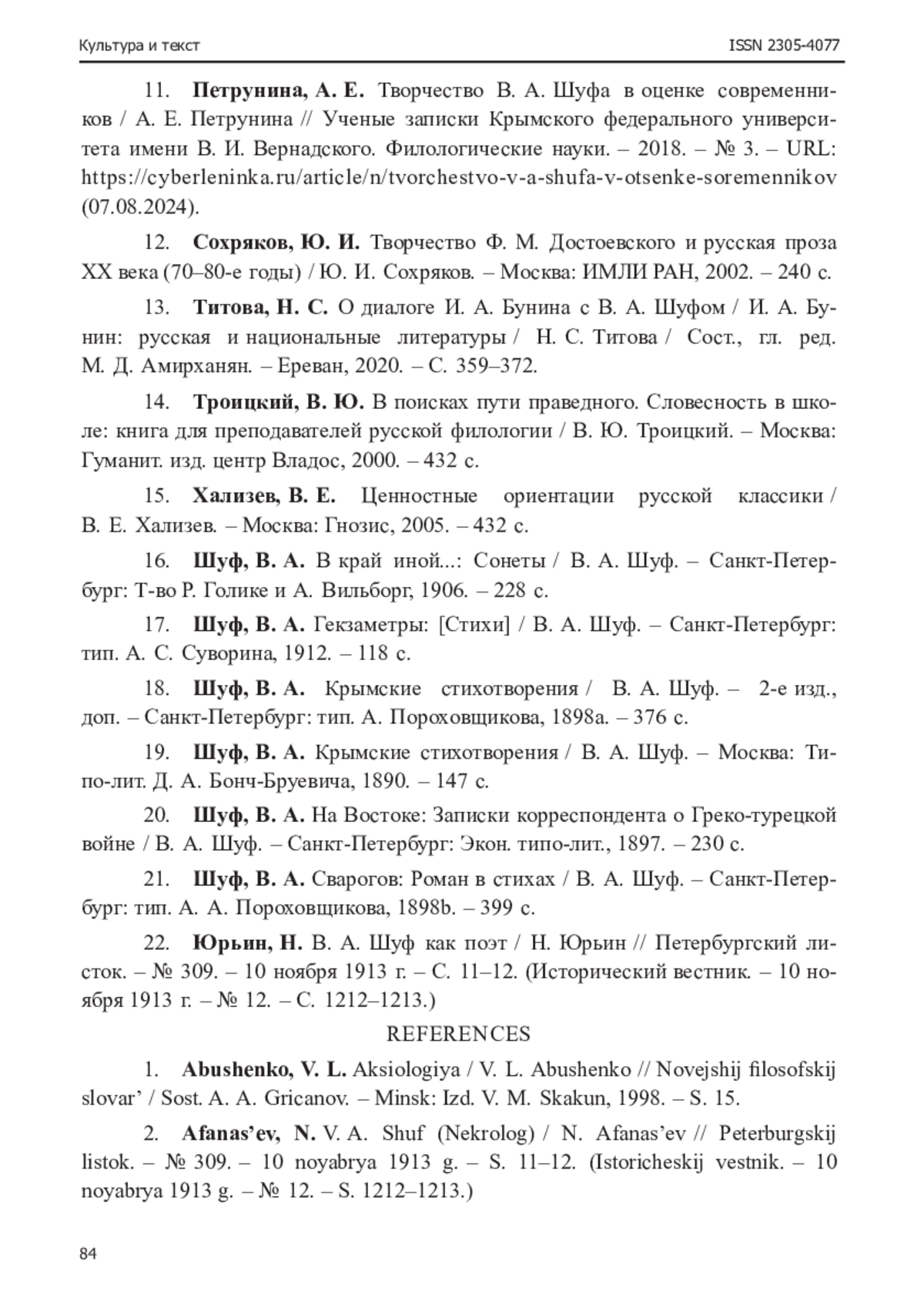 13. Титова, Н. С. О диалоге И. А. Бунина с В. А. Шуфом / И. А. Бунин: русская и национальные литературы / Н. С. Титова / Сост., гл. ред. М. Д. Амирханян. - Ереван, 2020. - С. 359-372.