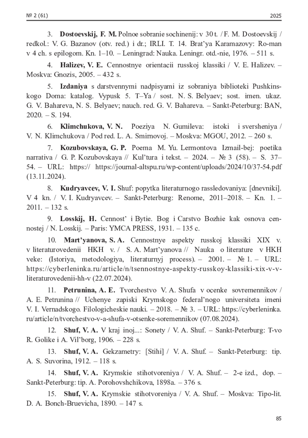 7. Козубовская, Г. П. Поэма М. Ю. Лермонтова Измаил-бей: поэтика нарратива / Г. П. Козубовская // Культура и текст. - 2024. - № 3 (58). - С. 37-54. - URL: https://https://journal-altspu.ru/wp-content/uploads/2024/10/37-54.pdf (13.11.2024). EDN: KTZTUS