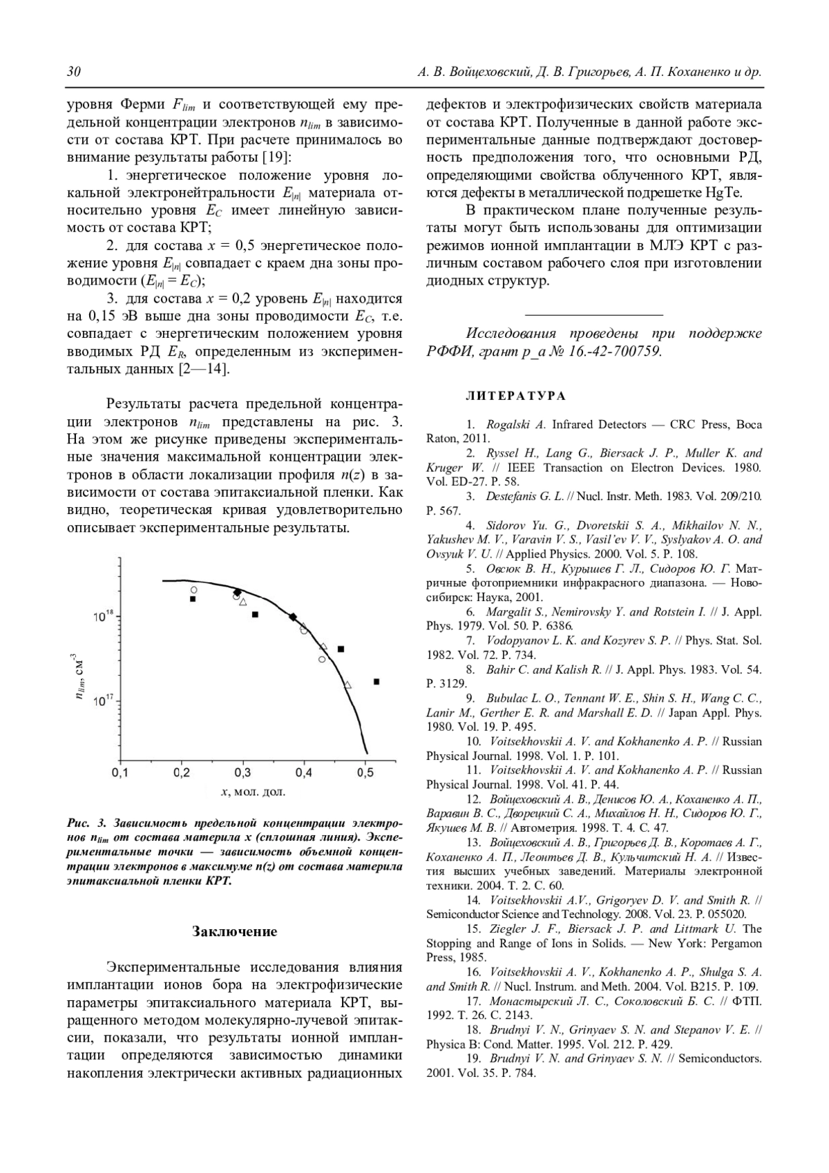 14. Voitsekhovskii A.V., Grigoryev D. V. and Smith R. // Semiconductor Science and Technology. 2008. Vol. 23. P. 055020.