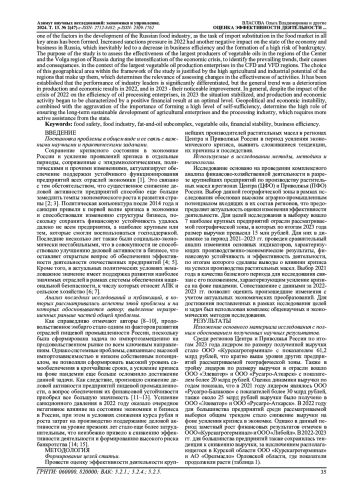 Цель исследования состоит в оценке эффективности деятельности крупнейших производителей растительных масел в регионах Центра и Приволжья России в период усиления экономического кризиса, выявлении сложившихся тенденций, их причин и последствий в разрезе крупнейших предприятий по производству растительных масел в регионах ЦФО и ПФО. Выбор данной географической зоны в рамках исследования обоснован высоким аграрно-промышленным потенциалом входящих в их состав регионов, что предопределяет актуальность оценки изменения эффективности деятельности. Установлено, результаты деятельности лидеров отрасли существенно дифференцированы, однако общей тенденцией стало ухудшение производственно-экономических результатов в 2022 году, а в 2023 году - их заметное улучшение. В целом, несмотря на влияние кризиса 2022 года на эффективность деятельности предприятий маслопереработки, в 2023 году ситуация стабилизировалась, и производственно-экономическая деятельность стала характеризоваться положительным финансовым результатом на оптимальном уровне. Геополитическая и экономическая нестабильность в совокупности с обострением значимости формирования высокого уровня самообеспечения предопределяют высокую роль обеспечения долгосрочного устойчивого развития предприятий АПК и перерабатывающей промышленности, что требует более активного содействия со стороны государства.