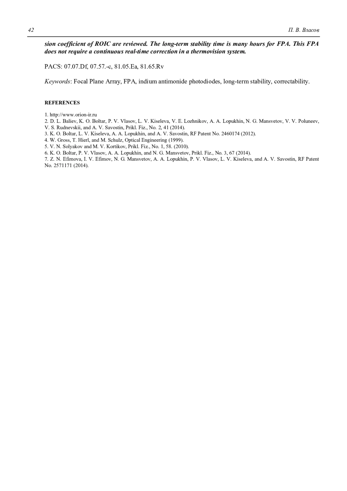 6. Болтарь К. О., Власов П. В., Лопухин А. А., Мансветов Н. Г. // Прикладная физика. 2014. № 3. С. 67.