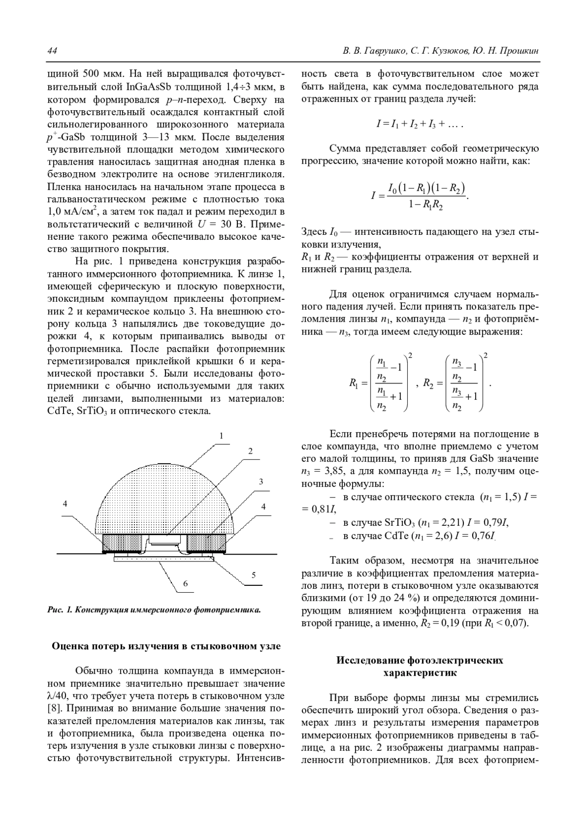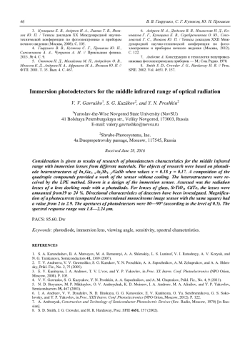 V. V. Gavruško, S. G. Kuzûkov, and Y. N. Proshkin Immersion photodetectors for the middle infrared range of optical radiation 43