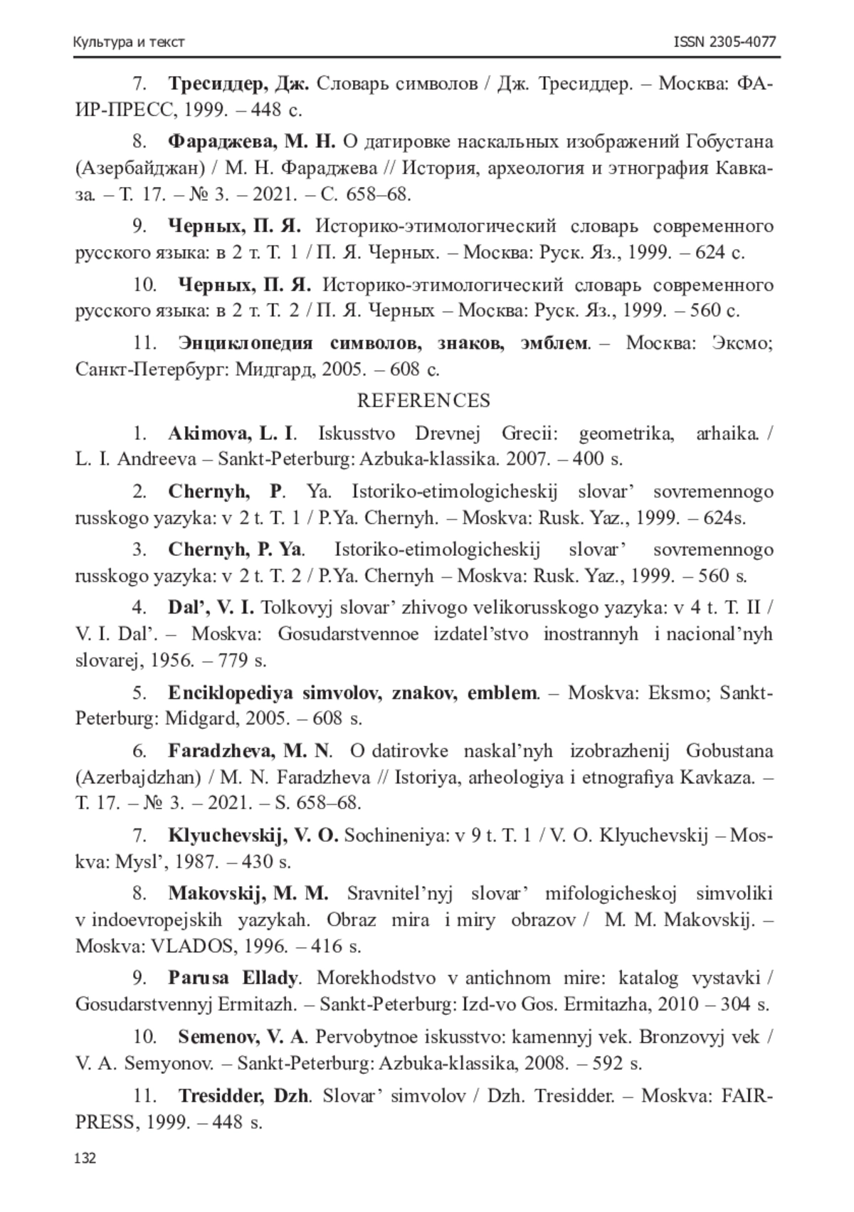 8. Фараджева, М. Н. О датировке наскальных изображений Гобустана (Азербайджан) / М. Н. Фараджева // История, археология и этнография Кавказа. - Т. 17. - № 3. - 2021. - С. 658-68. EDN: CLTRJB