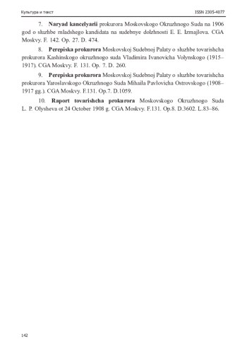10. Рапорт товарища прокурора Московского Окружного Суда Л. П. Олышева от 24 октября 1908 г. ЦГА Москвы. Ф.131. Оп.8. Д.3602. Л. 83-86.