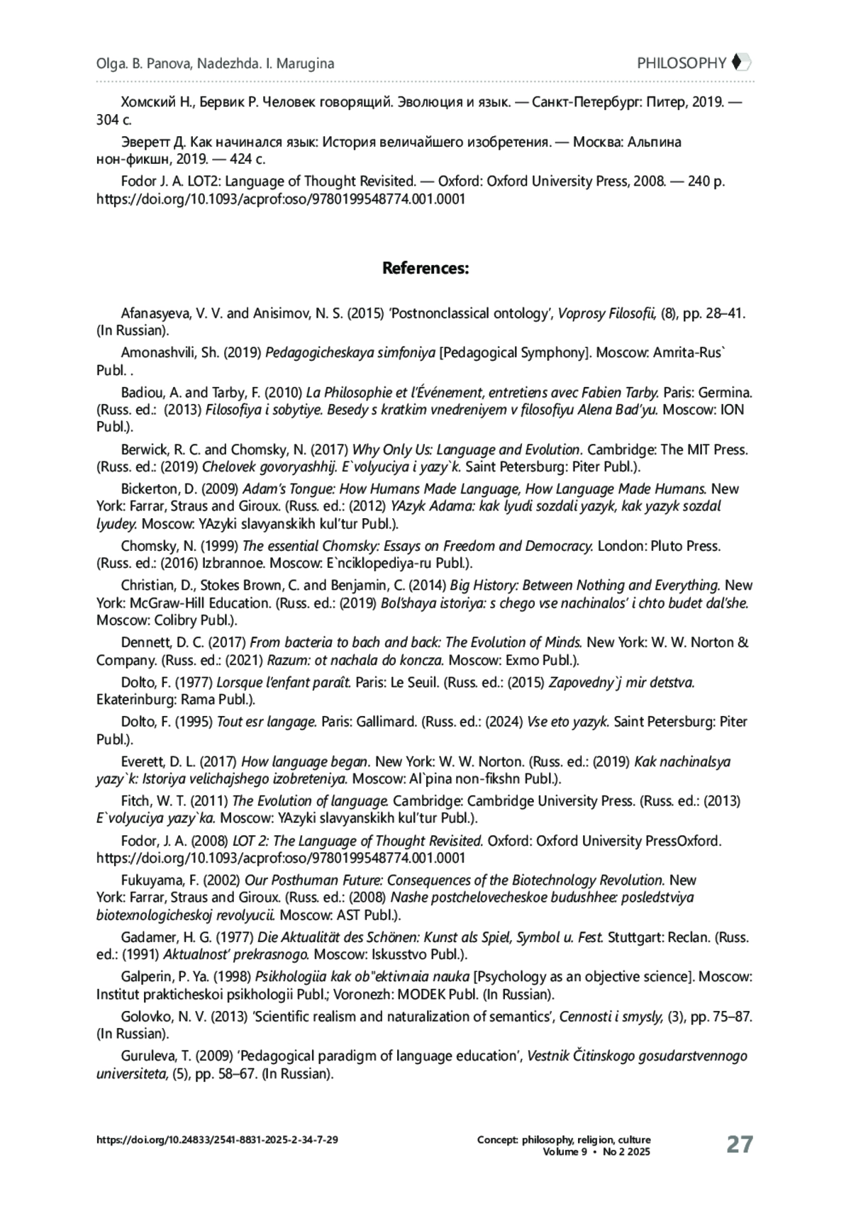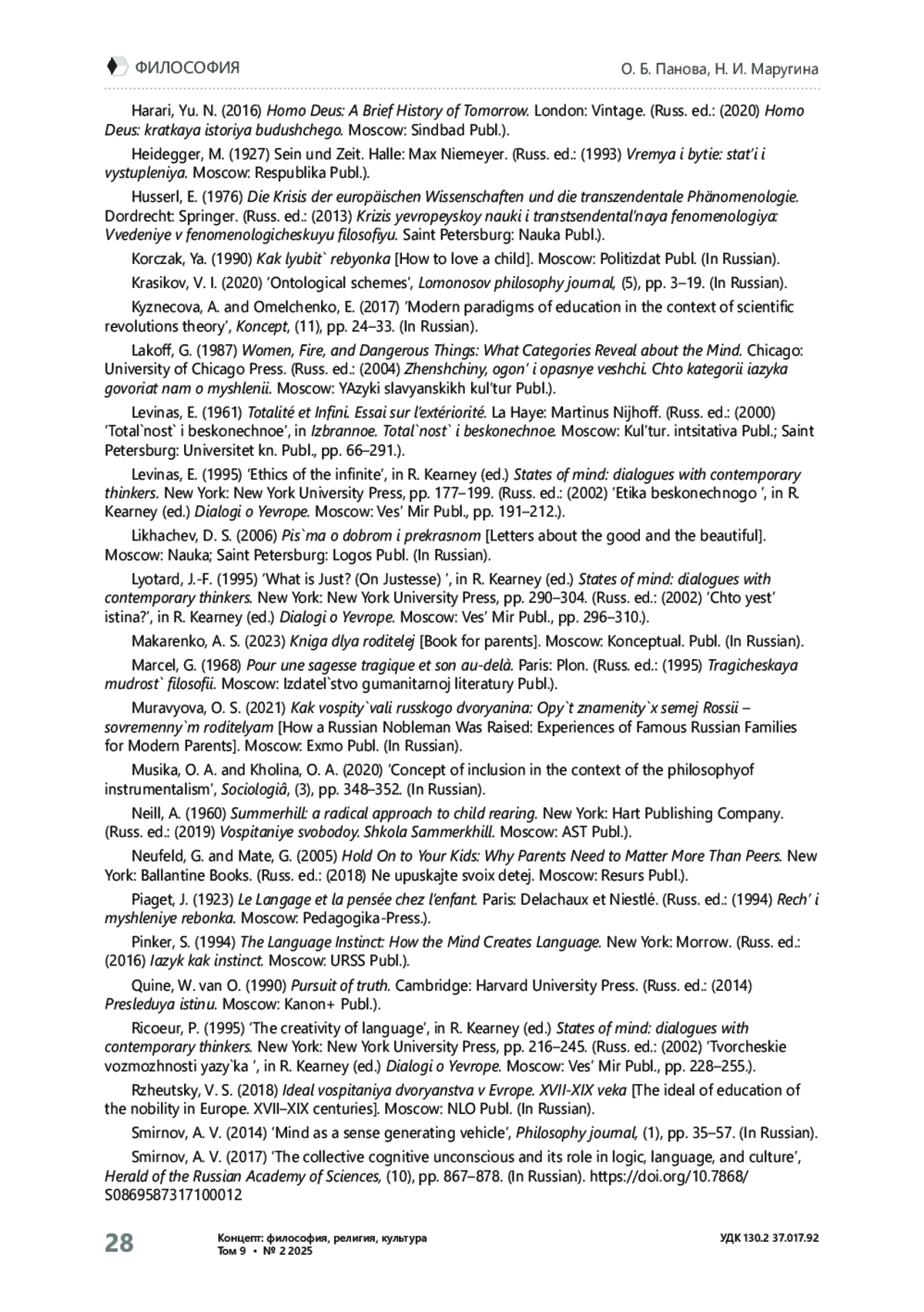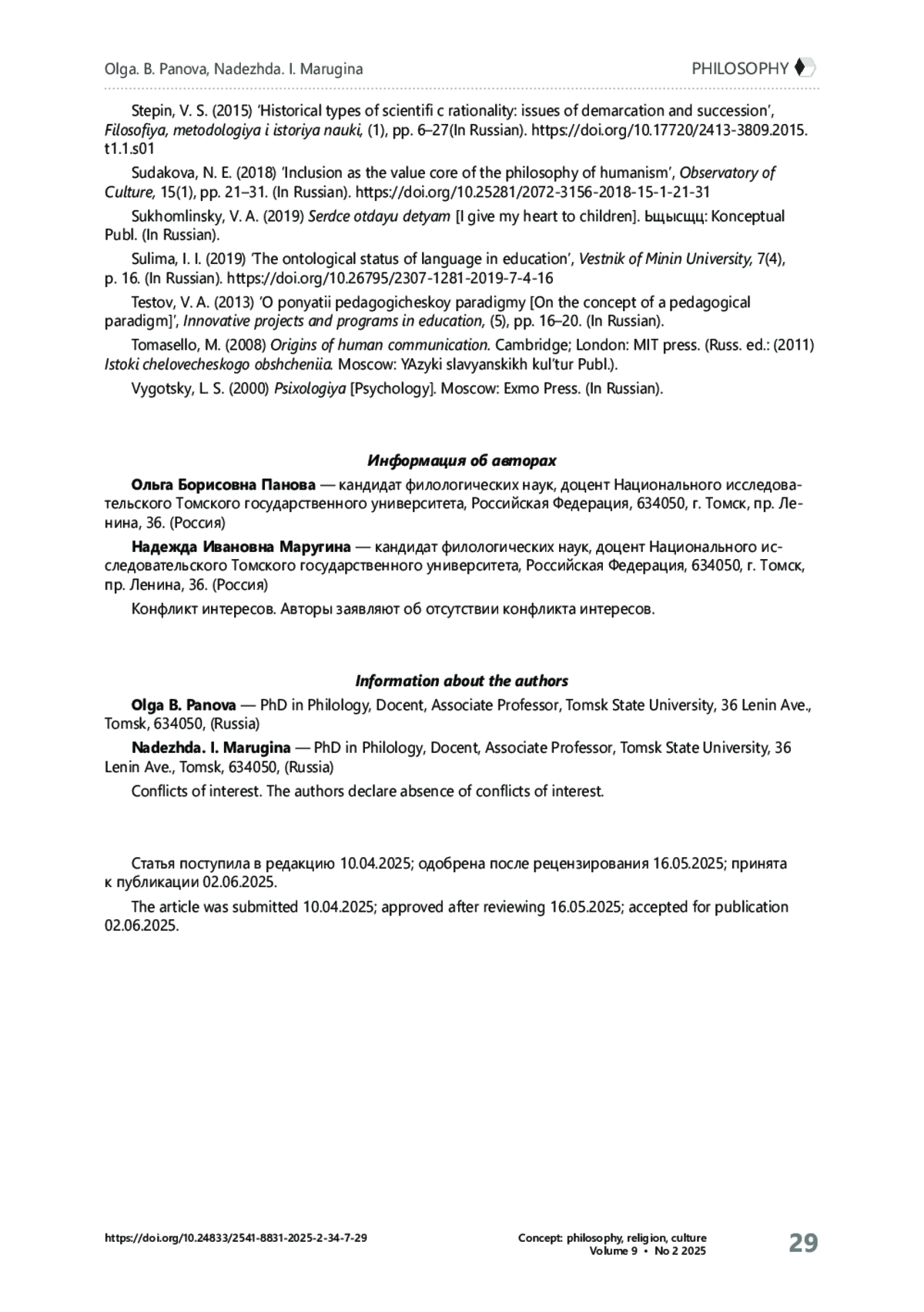 38. Сулима И. И. Бытийный статус языка в образовании // Вестник Мининского университета. - 2019. - Т. 7, № 4. - С. 16. https://doi.org/10.26795/2307-1281-2019-7-4-16