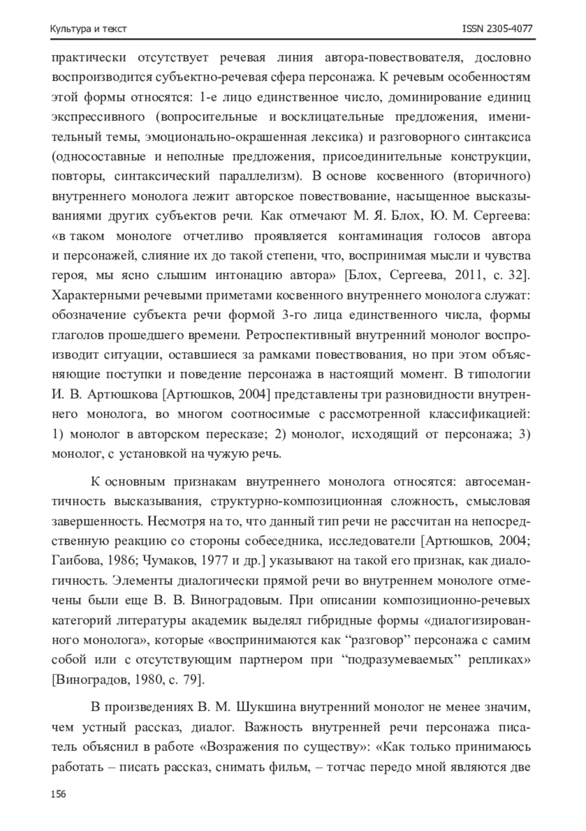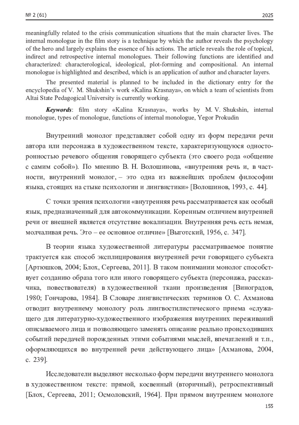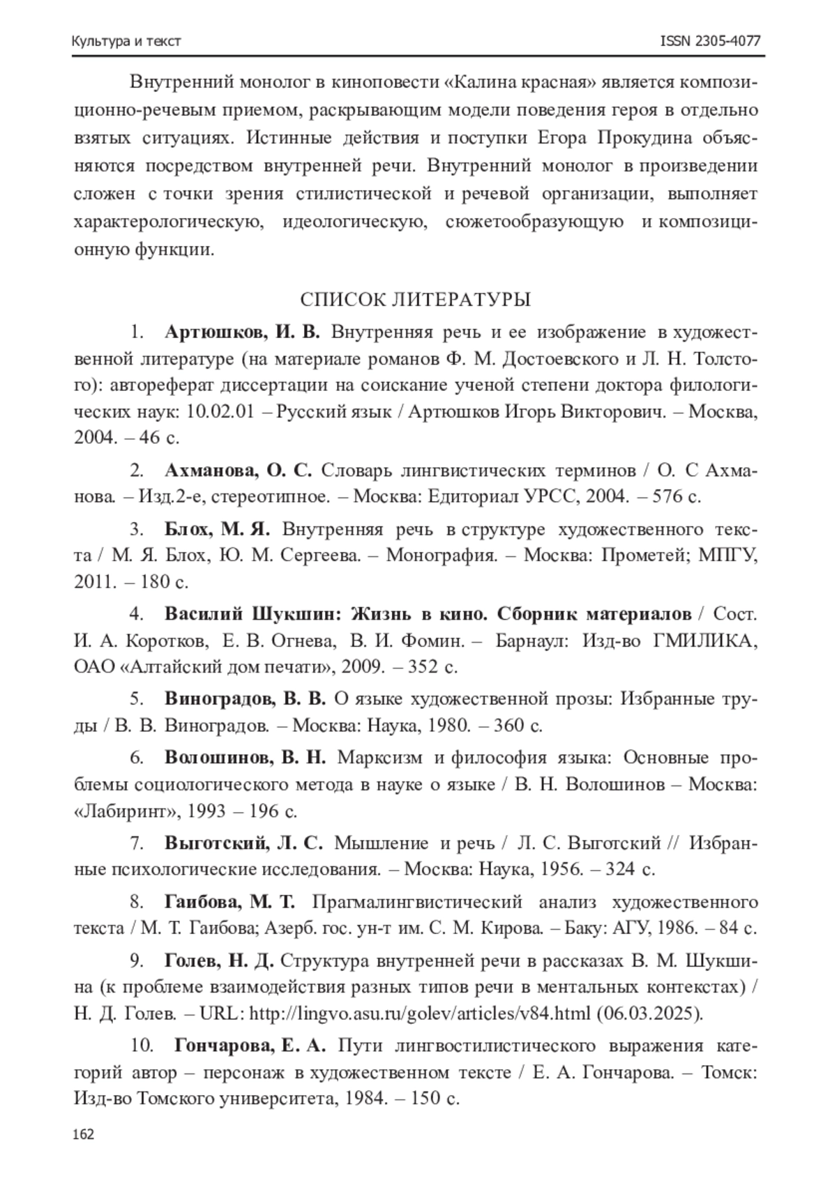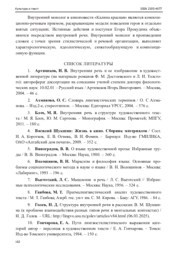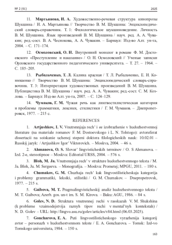 9. Голев, Н. Д. Структура внутренней речи в рассказах В. М. Шукшина (к проблеме взаимодействия разных типов речи в ментальных контекстах) / Н. Д. Голев. - URL: http://lingvo.asu.ru/golev/articles/v84.html (06.03.2025). EDN: RMJAKL