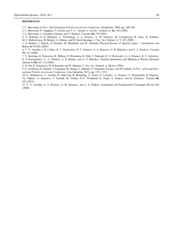 6. Anashin V. V., Collins I. R., Dostovalov R. V., Fedorov N. V., Krasnov A. A., Malyshev O. B., Ruzinov V. L. // Vacuum. 2004. Vol. 75. P. 155. EDN: LIUPQT