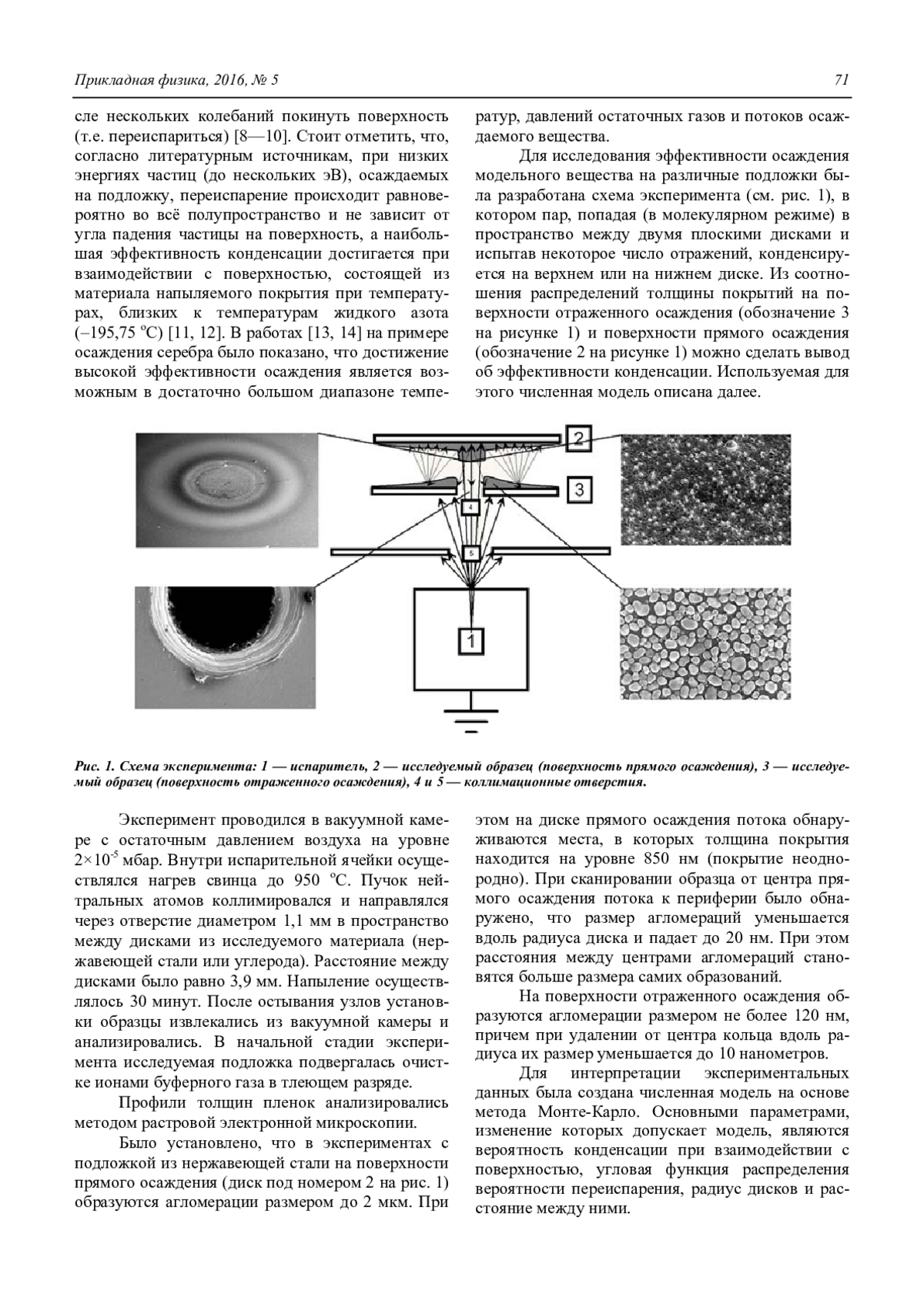 В работе представлено исследование коэффициента осаждения вещества (свинца), моделирующего тяжелые компоненты ОЯТ, на различные подложки коллекторов (дюралюминий, нержавеющая сталь, углерод). Проведенные эксперименты и предложенная расчетная модель позволили установить, что эффективность осаждения свинца на подложки из нержавеющей стали и углерода, которая составила 75 % и 81 % при средних температурах подложек 70 оС и 60 оС соответственно. Была также исследована адгезия покрытий, нанесённых на положки из нержавеющей стали и дюралюминия, и было показано, что отрыв нанесенной пленки происходит при 0,45— 0,9 H и 0,35—0,9 H соответственно. Стоит отметить, что полученные значения нагрузок отслоения позволят организовать эффективное удаление вещества с поверхности коллекторов с помощью механического воздействия, не прерывая на долгое время работу установки.