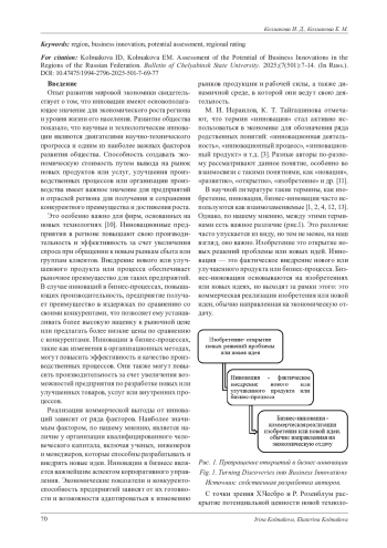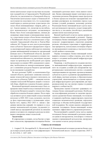 В настоящий момент в силу интенсивного внедрения инноваций в разные отрасли экономики актуализируется вопрос оценки их потенциала в экономике регионов. В статье рассматривается роль бизнес-инноваций как двигателей научно-технического прогресса и одного из наиболее важных факторов развития экономики регионов. Авторами раскрывается отличие понятий «изобретение», «инновация», «бизнес-инновация», которые часто в научной литературе рассматриваются как взаимозаменяемые. В статье анализируются результаты оценки потенциала бизнес-инноваций на основе авторской методики, в основе которой находится расчет комплексного показателя оценки. Рассмотрена структура комплексного показателя, предложенного для оценки потенциала бизнес-инноваций. Данная методика апробирована авторами на примере субъектов Уральского федерального округа. Построен рейтинг субъектов УРФО по уровню потенциала бизнес-инноваций в экономике региона. Выявлены тенденции и проблемы, влияющие на реализацию бизнес-инноваций в регионах РФ. Подчеркнута необходимость классификации регионов по наличию предпосылок к развитию бизнес-инноваций, что позволяет выявлять проблемы, корректировать стратегию социально-экономического развития, определять структуру и объемы необходимой государственной поддержки.