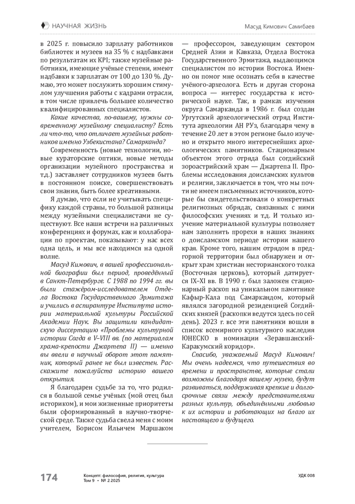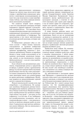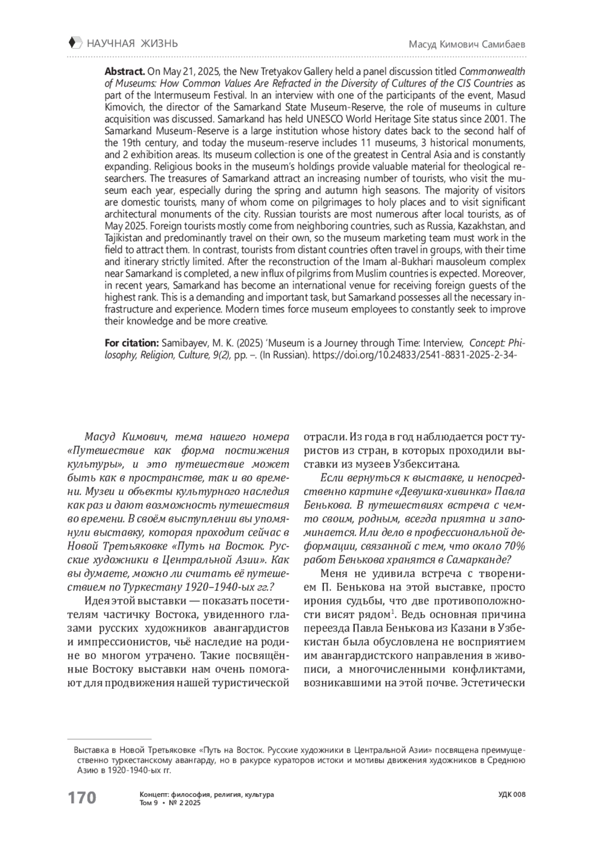 21 мая 2025 г. в Новой Третьякове в рамках фестиваля Интермузей состоялась панельная дисскусия «Содружество музеев. Как единые ценности преломляются в многообразии культур стран СНГ», в которой принял участие директор Государственного музея-заповедника «Самарканд» Масуд Кимович Самибаев. Редакция журнала «Концепт: философия, религия, культура» предлагает читателем интервью с Масудом Кимовичем.