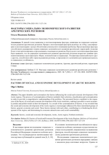 5. Вершинин И. С. Социально-экономические факторы развития арктических регионов // Вестник УМЦ. 2020. №1 (26). C. 55-59.