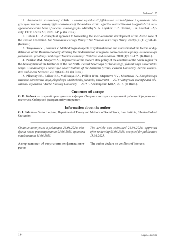 12. Бабина О. И. Концептуальный подход к прогнозированию социально-экономического развития Арктической зоны Российской Федерации // The Newman in Foreign Policy. 2023. Т. 4, № 73(117). С. 41-44. EDN: CYVCKR