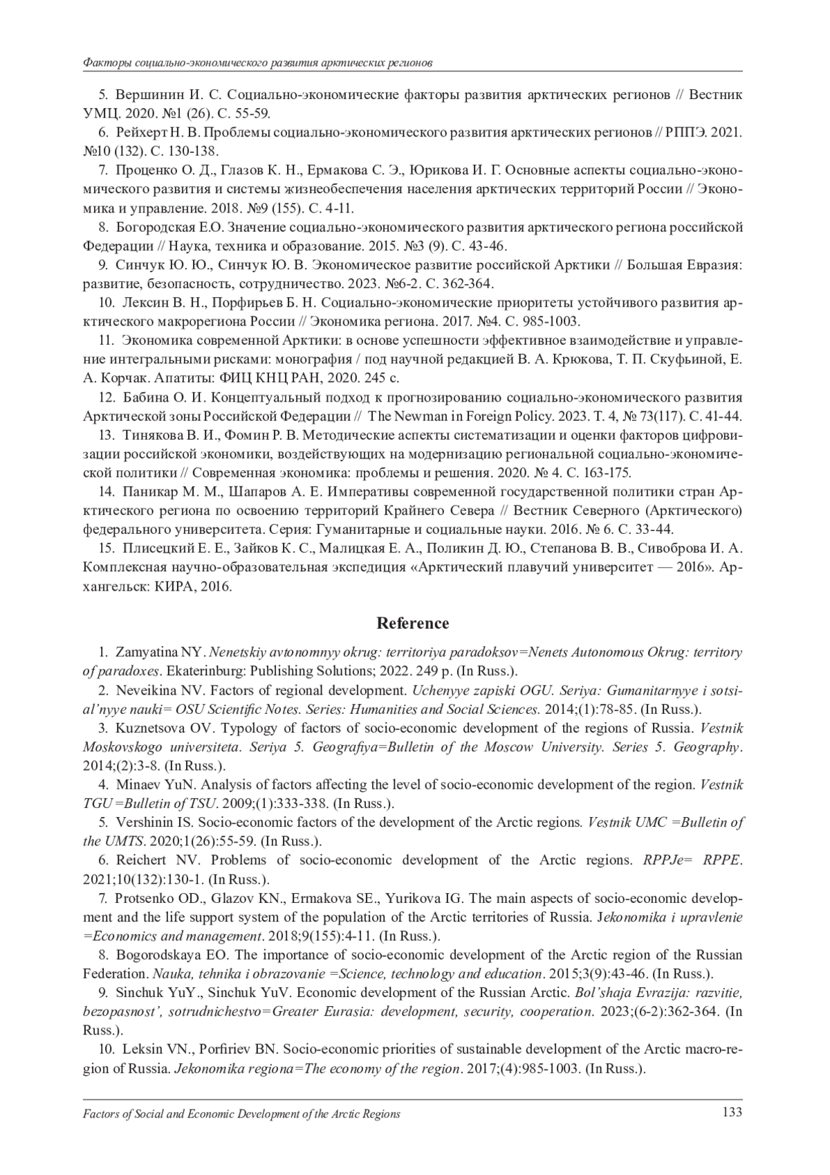 6. Рейхерт Н. В. Проблемы социально-экономического развития арктических регионов // РППЭ. 2021. №10 (132). C. 130-138.
