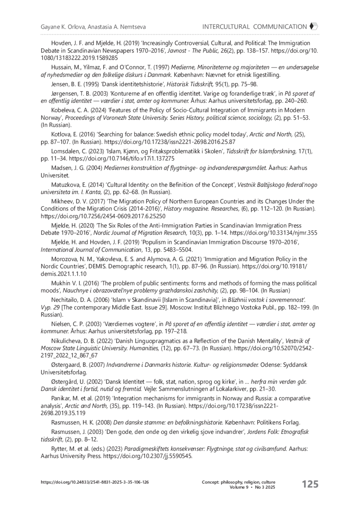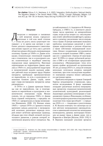 1. Бадаева А. С. Датская народная партия и трансформации иммиграционной политики Дании // Мировая экономика и международные отношения. - 2022. - Т. 66, № 3. - С. 119-129. https://doi.org/10.20542/0131-2227-2022-66-3-119-129