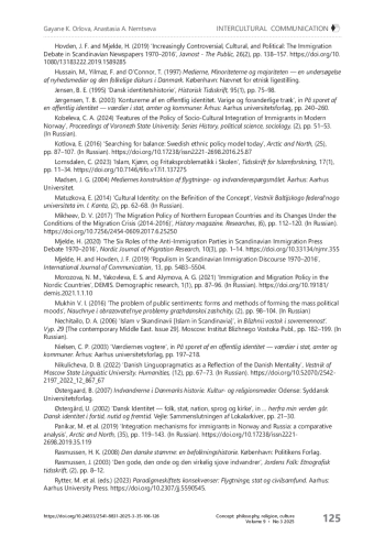 32. Hovden J. F., Mjelde H. Increasingly Controversial, Cultural, and Political: The Immigration Debate in Scandinavian Newspapers 1970-2016 // Javnost - The Public. - 2019. - Vol. 26, No 2. - P. 138-157. https://doi.org/10.1080/13183222.2019.1589285