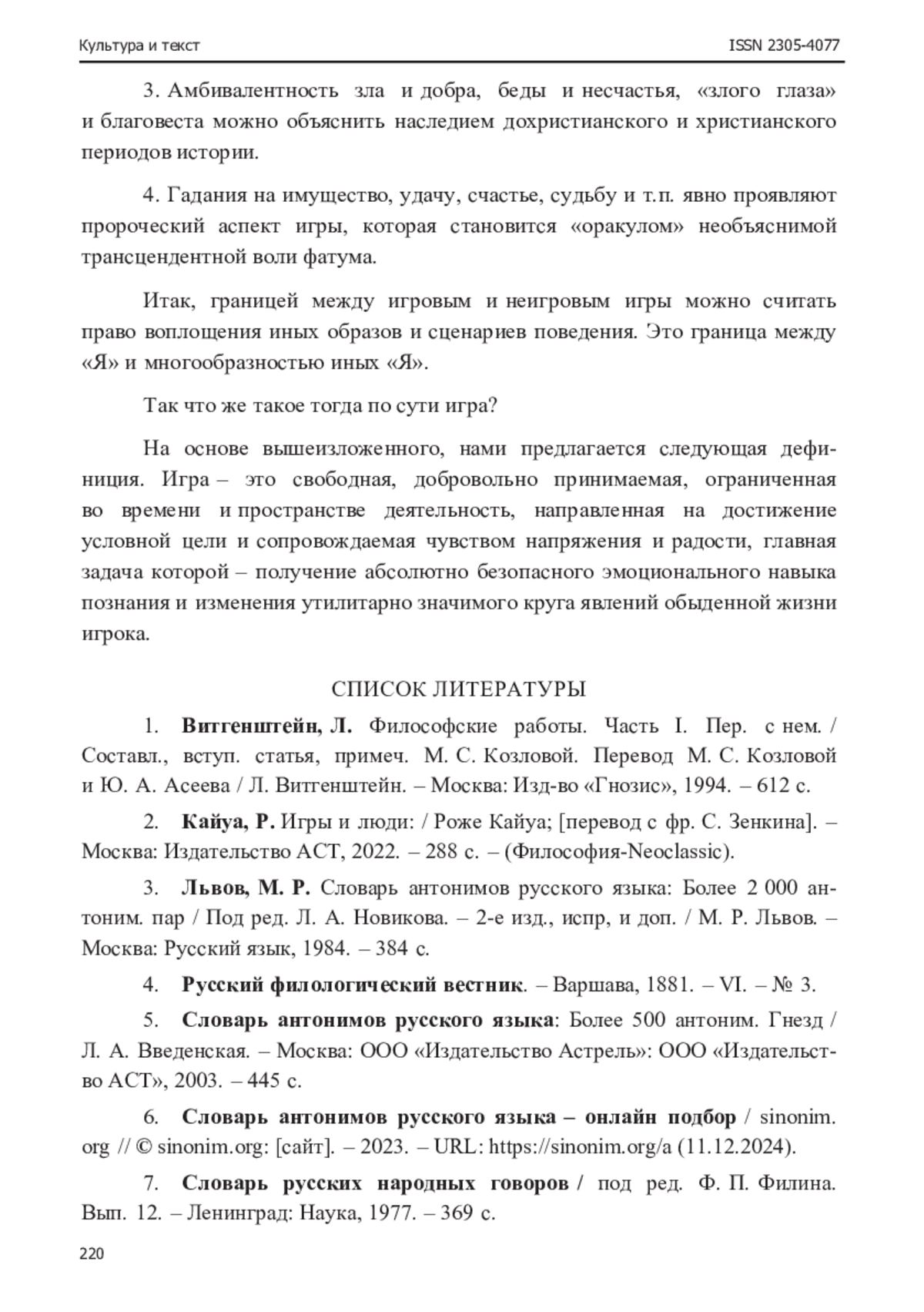 13. Шевцов, К. П. Границы игры / К. П. Шевцов // Международный журнал исследований культуры. - 2019. - № 1 (34). - URL: https://cyberleninka.ru/article/n/granitsy-igry (11.12.2024).