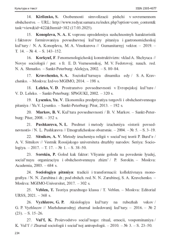 17. Кириленко, С. Особенности символизации пищи в современном обществе. - URL: http://www.redyar.samara.ru/index.php?option=com_content&task=view&id=422&Itemid=382 (17.03.2025).