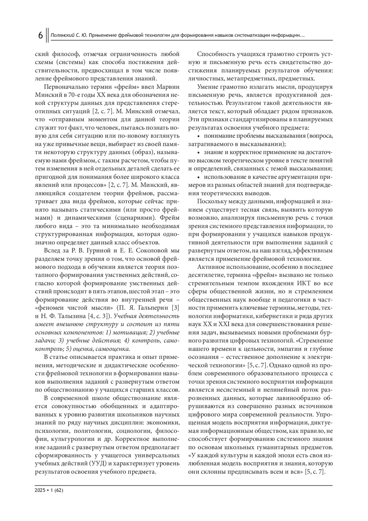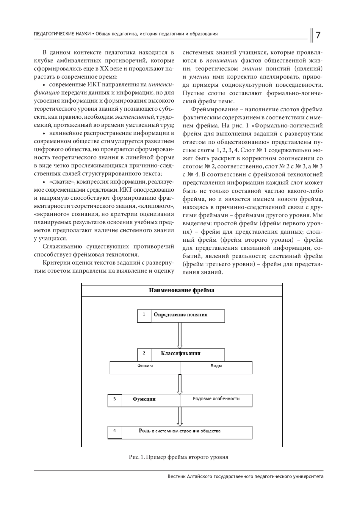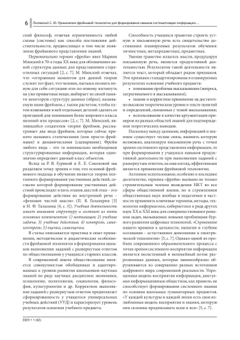 Целью данной статьи является исследование и анализ применения фреймовой технологии для формирования навыков систематизации информации и достижения результатов освоения учебного предмета. Специфическая задача исследования заключается в выявлении эффективности использования фреймов в образовательном процессе, а также в разработке методических рекомендаций для педагогов по их внедрению в учебный процесс.