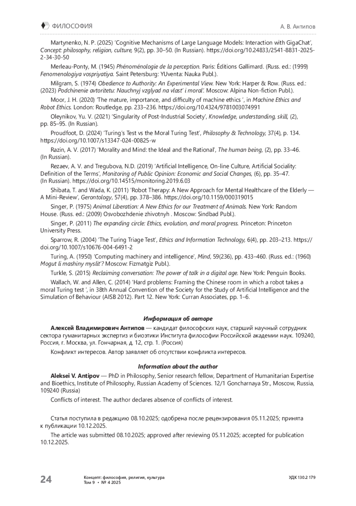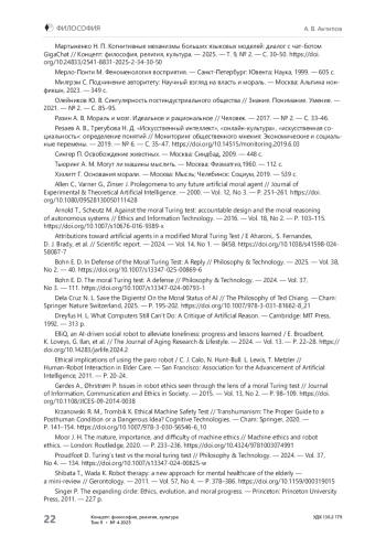 18. Bohn E. D. In Defense of the Moral Turing Test: A Reply // Philosophy & Technology. - 2025. - Vol. 38,