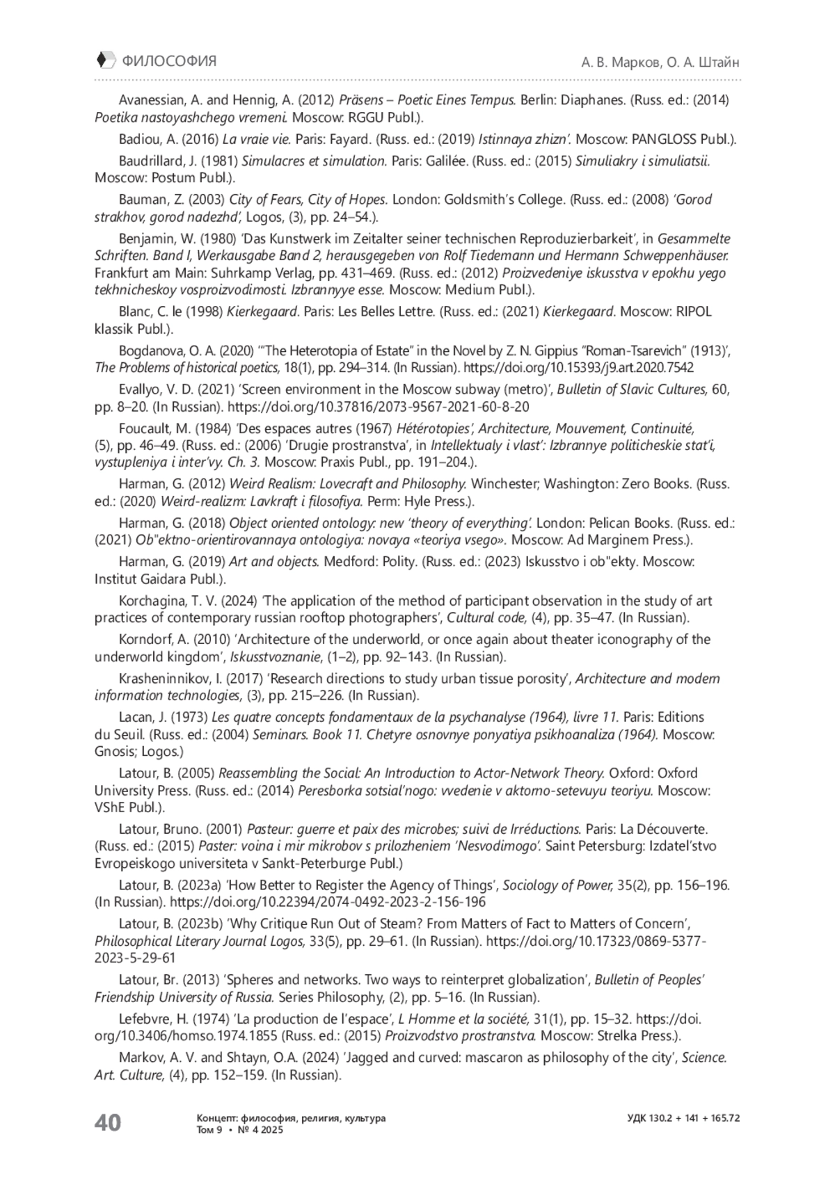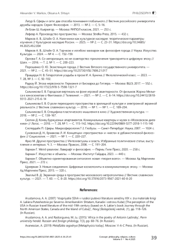 39. Эвалльё В. Д. Экранная среда в пространстве московского метрополитена // Вестник славянских культур. - 2021. - Т. 60. - С. 8-20. https://doi.org/10.37816/2073-9567-2021-60-8-20