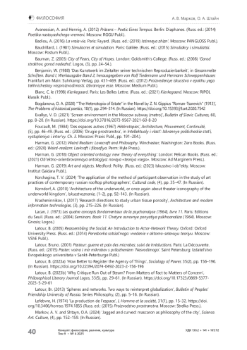 15. Латур Б. Как лучше регистрировать агентность вещей: семиотика и онтология // Социология власти. - 2023. - Т. 35, № 2. - С. 156-196. https://doi.org/10.22394/2074-0492-2023-2-156-196