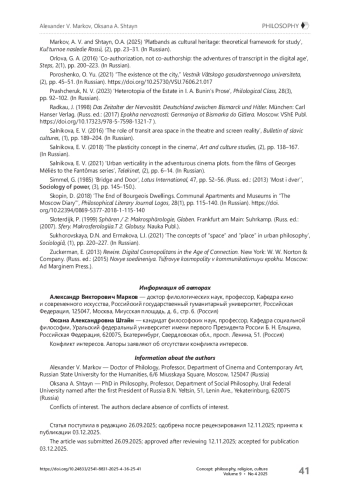 23. Марков А. В., Штайн О. А. Торчком и изгибом: маскарон как философия города // Наука. Искусство. Культура. - 2024. - № 4. - С. 152-159.