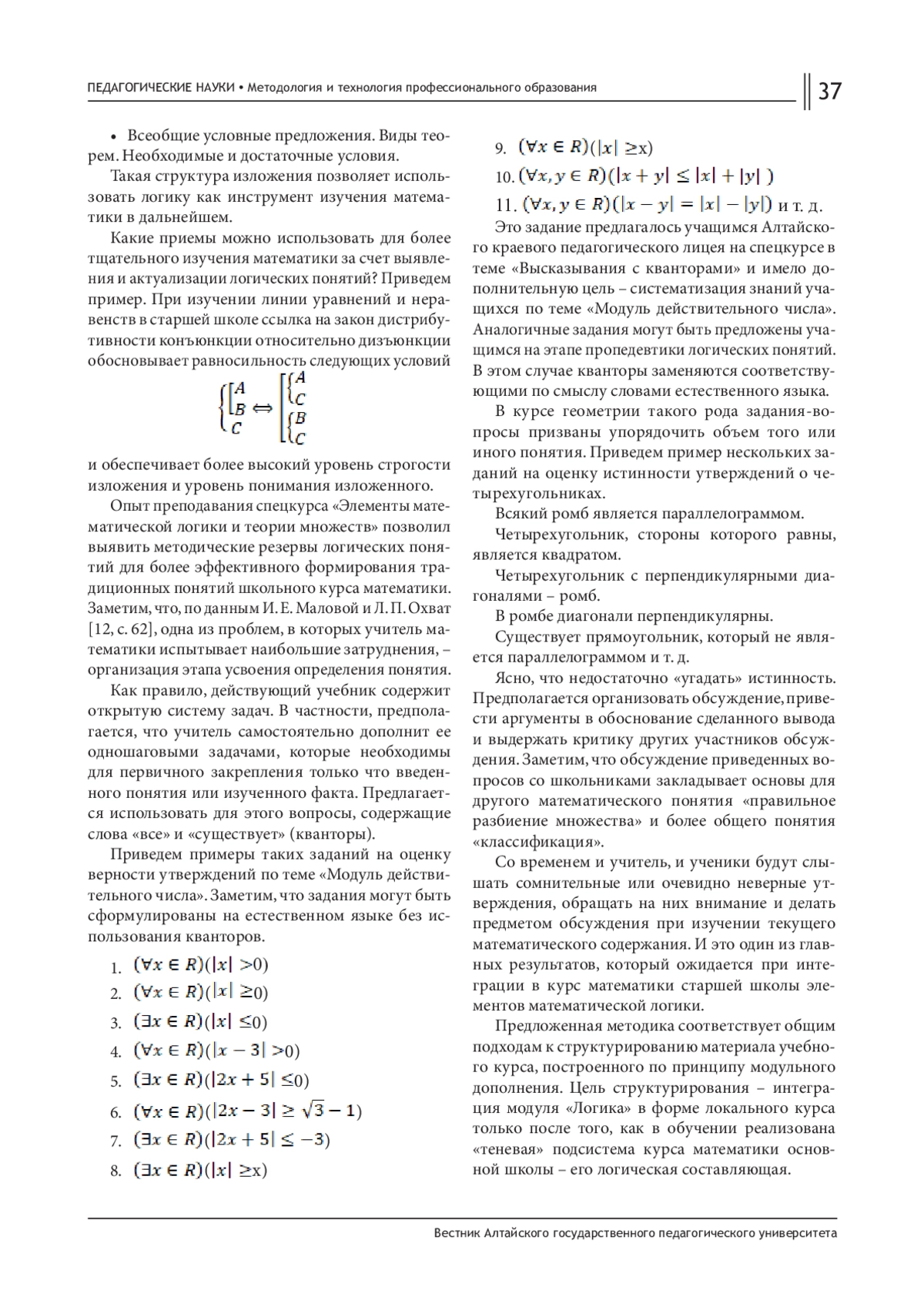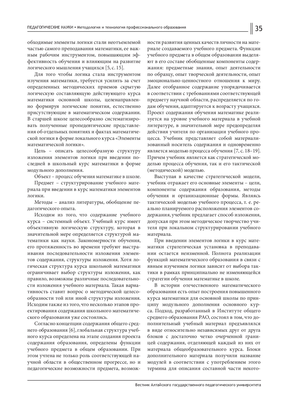 2. Брейтигам Э. К., Кисельников И. В., Кошева Д. П. Реализация Концепции развития математического образования в Алтайском государственном педагогическом университете // Вестник Алтайского государственного педагогического университета. 2016. № 3 (28). С. 93-95. EDN: WVOKVL