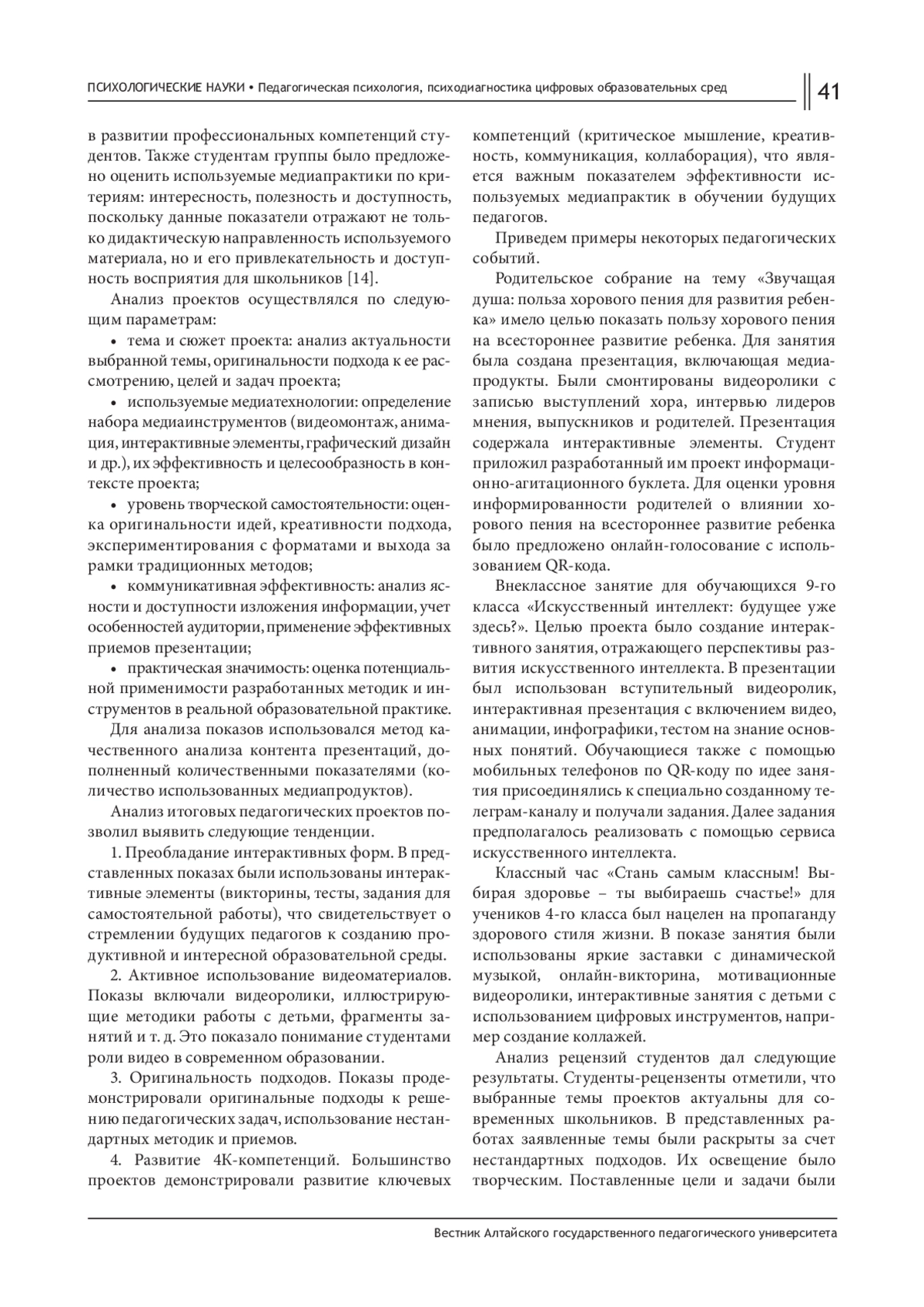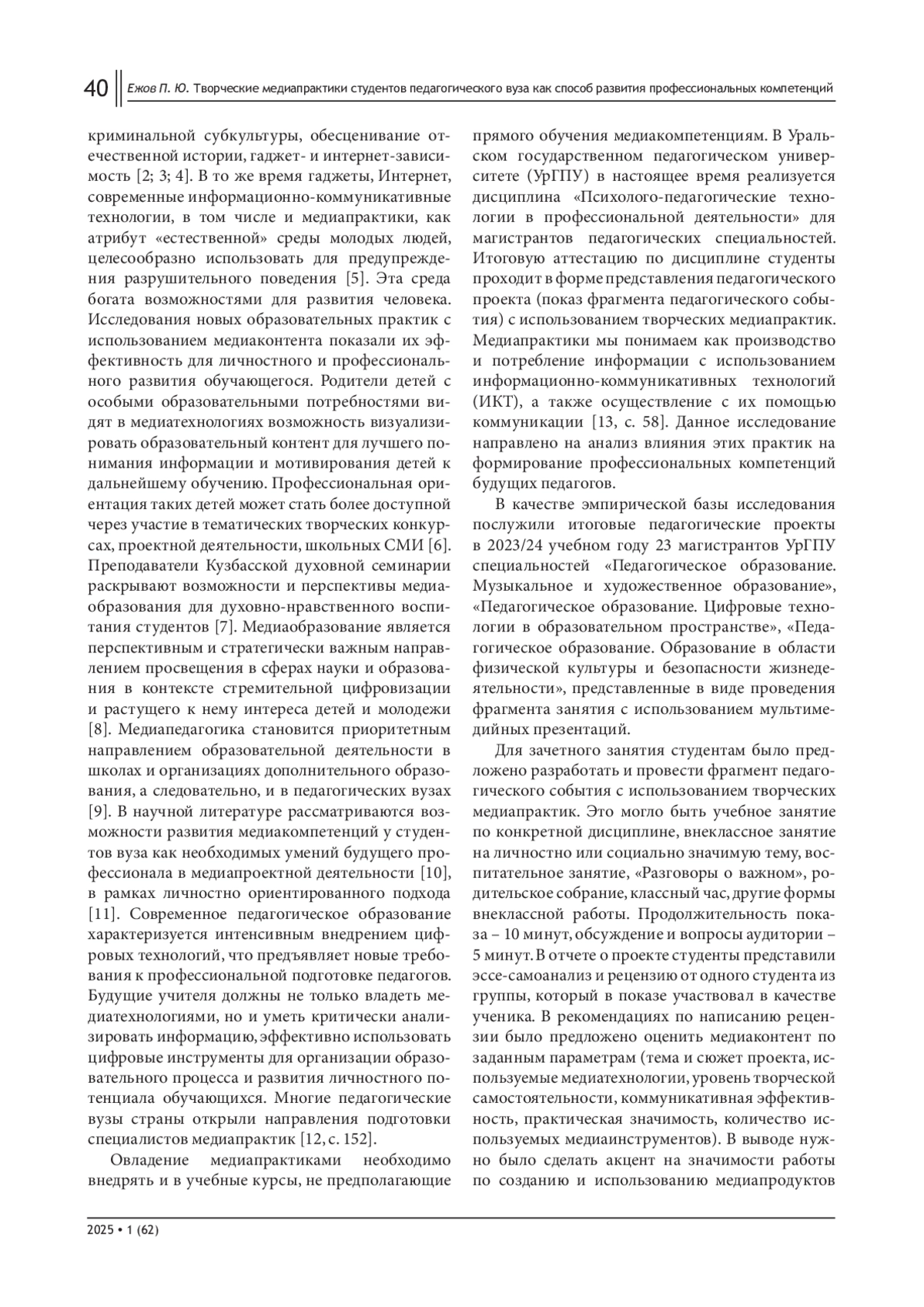 10. Касьянова Е. В., Сафонов К. В. Методика развития медиакомпетенций студентов посредством медиаобразовательных проектов // Вестник Красноярского государственного педагогического университета им. В. П. Астафьева (Вестник КГПУ). 2020. № 2 (52). С. 46-57. EDN: IXPVNL