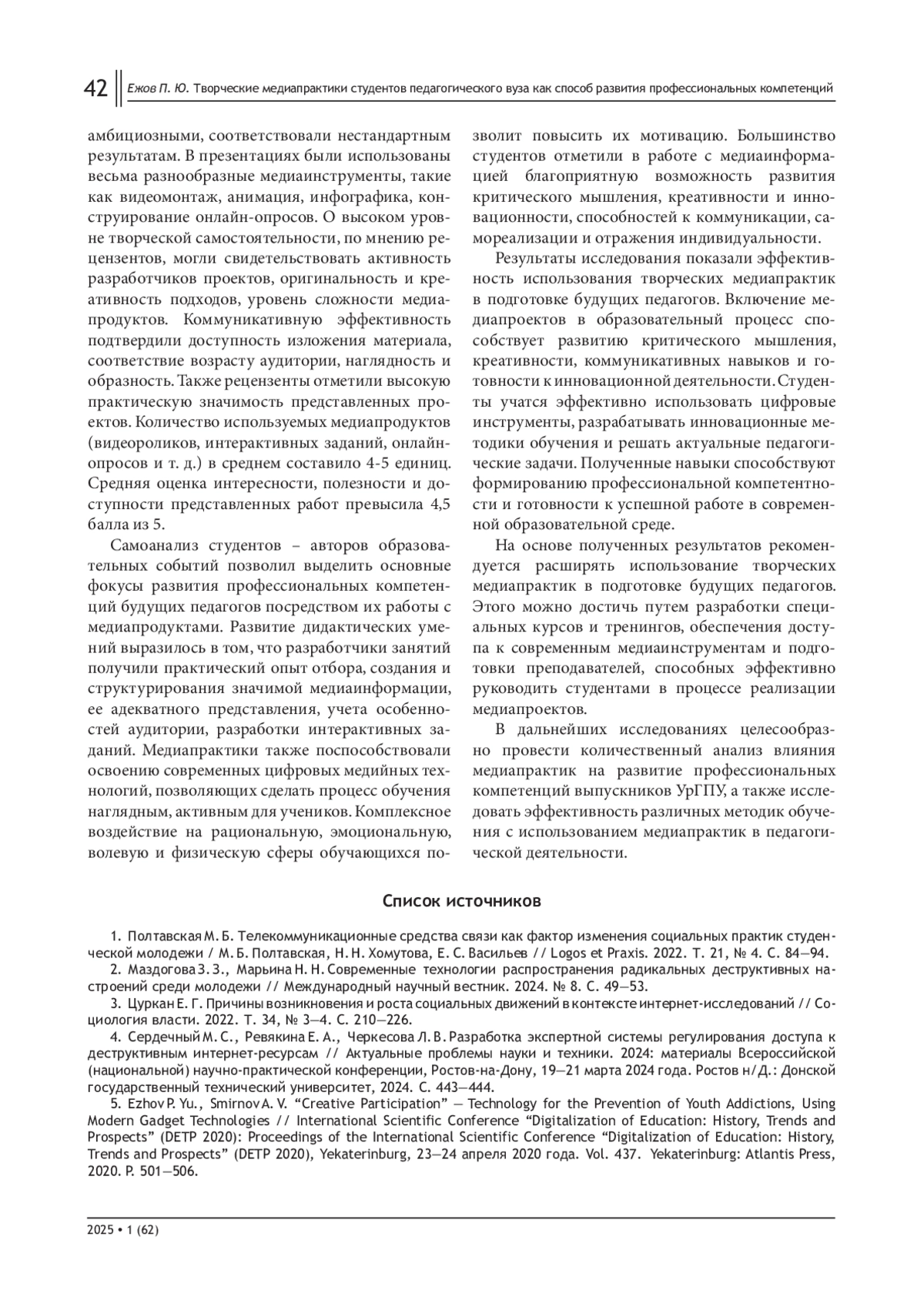 5. Ezhov P. Yu., Smirnov A. V. “Creative Participation” - Technology for the Prevention of Youth Addictions, Using Modern Gadget Technologies // International Scientific Conference “Digitalization of Education: History, Trends and Prospects” (DETP 2020): Proceedings of the International Scientific Conference “Digitalization of Education: History, Trends and Prospects” (DETP 2020), Yekaterinburg, 23-24 апреля 2020 года. Vol. 437. Yekaterinburg: Atlantis Press, 2020. P. 501-506.
