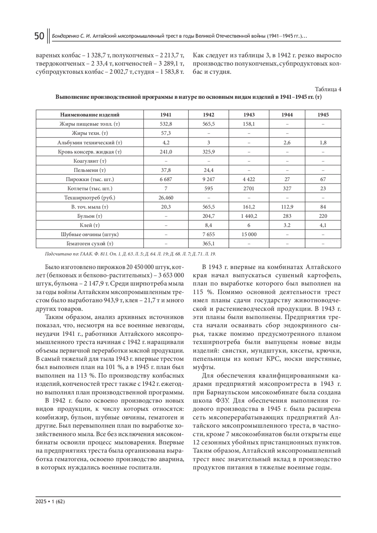 11. Годовой отчет Алтайского краевого мясопромышленного треста по основной деятельности (1941 г.) // ГААК. Ф. 811. Оп. 1. Ед. хр. 63.