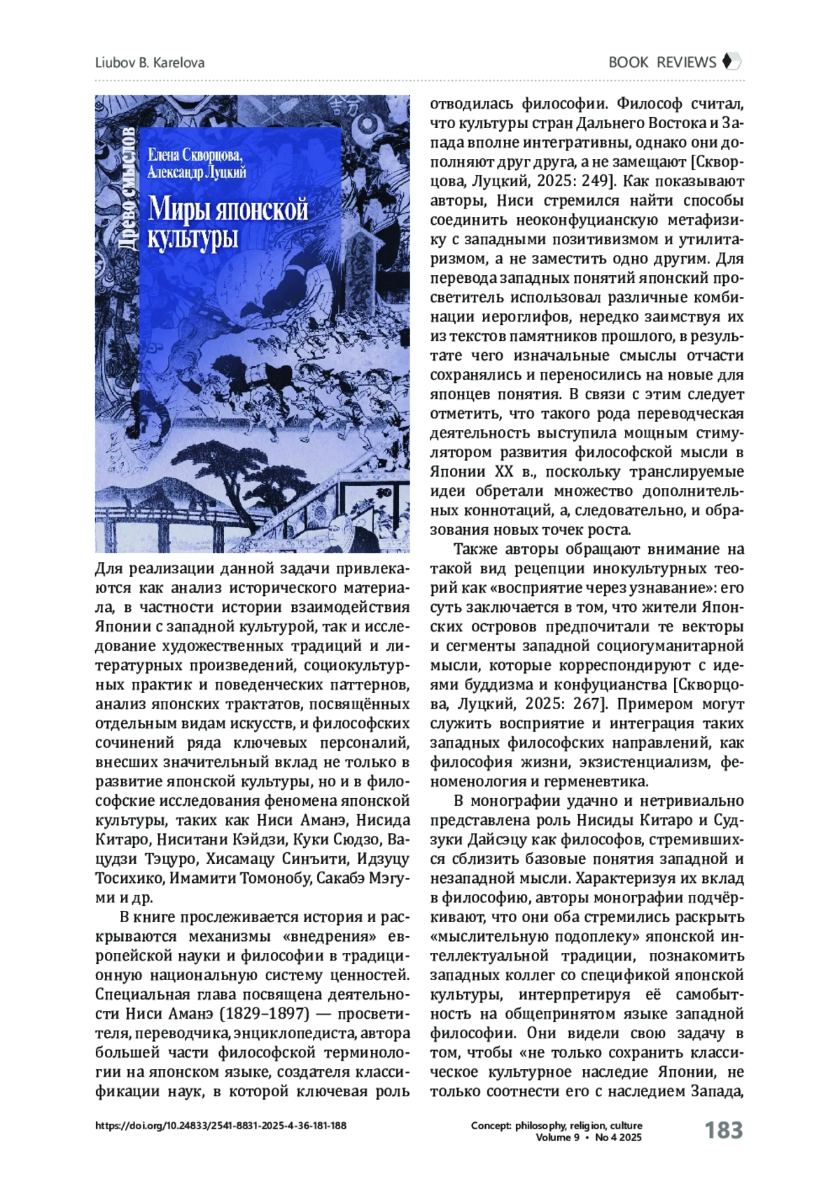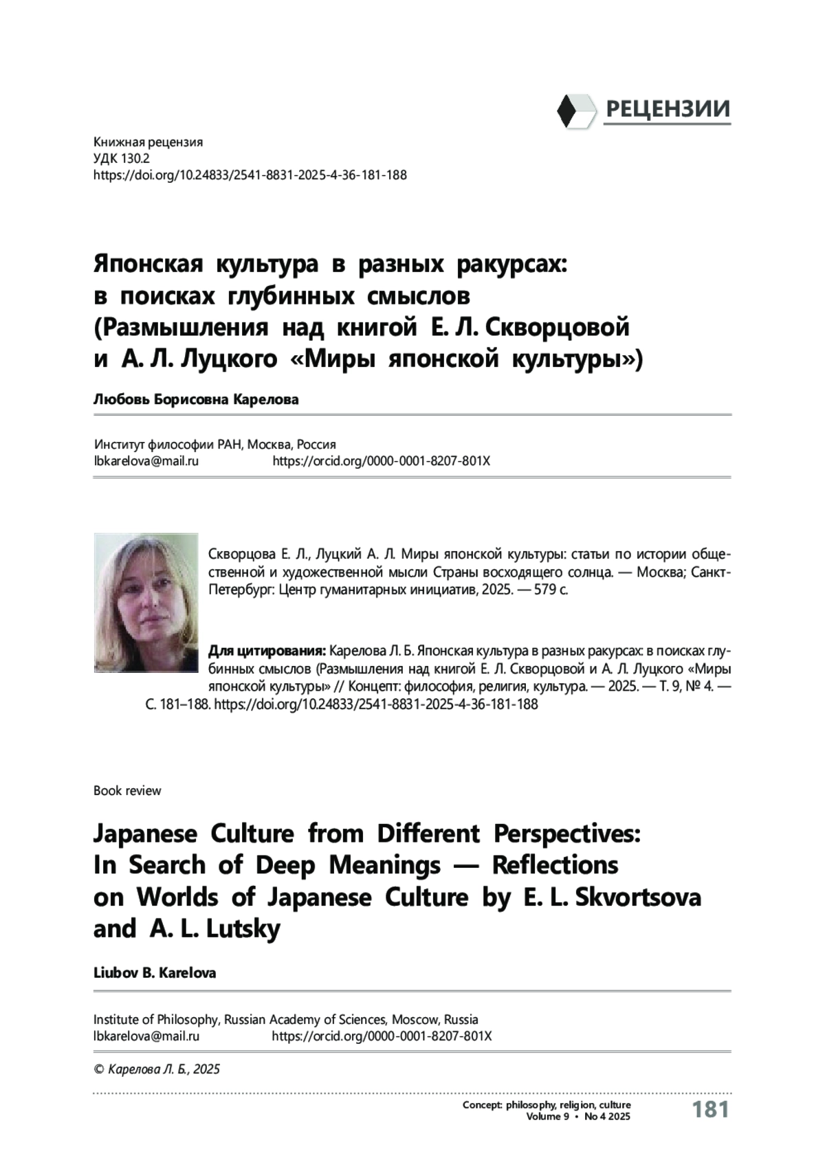 3. Скворцова Е. Л., Луцкий А. Л. Миры японской культуры: статьи по истории общественной и художественной мысли Страны восходящего солнца. - Москва; Санкт-Петербург: Центр гуманитарных инициатив, 2025. - 579 с.
