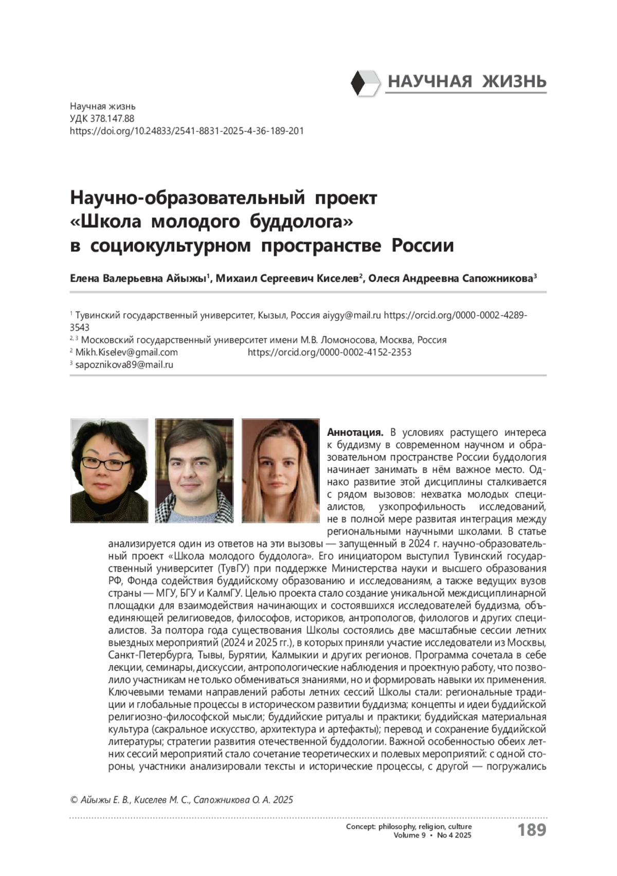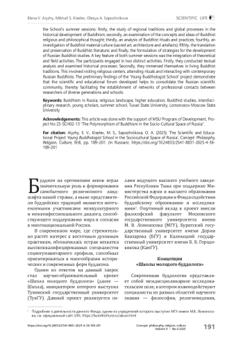 В условиях растущего интереса к буддизму в современном научном и образовательном пространстве России буддология начинает занимать в нём важное место. Однако развитие этой дисциплины сталкивается с рядом вызовов: нехватка молодых специалистов, узкопрофильность исследований, не в полной мере развитая интеграция между региональными научными школами. В статье анализируется один из ответов на эти вызовы — запущенный в 2024 г. научно-образовательный проект «Школа молодого буддолога». Его инициатором выступил Тувинский государственный университет (ТувГУ) при поддержке Министерства науки и высшего образования РФ, Фонда содействия буддийскому образованию и исследованиям, а также ведущих вузов страны — МГУ, БГУ и КалмГУ. Целью проекта стало создание уникальной междисциплинарной площадки для взаимодействия начинающих и состоявшихся исследователей буддизма, объединяющей религиоведов, философов, историков, антропологов, филологов и других специалистов. За полтора года существования Школы состоялись две масштабные сессии летних выездных мероприятий (2024 и 2025 гг.), в которых приняли участие исследователи из Москвы, Санкт-Петербурга, Тывы, Бурятии, Калмыкии и других регионов. Программа сочетала в себе лекции, семинары, дискуссии, антропологические наблюдения и проектную работу, что позволило участникам не только обмениваться знаниями, но и формировать навыки их применения. Ключевыми темами направлений работы летних сессий Школы стали: региональные традиции и глобальные процессы в историческом развитии буддизма; концепты и идеи буддийской религиозно-философской мысли; буддийские ритуалы и практики; буддийская материальная культура (сакральное искусство, архитектура и артефакты); перевод и сохранение буддийской литературы; стратегии развития отечественной буддологии. Важной особенностью обеих летних сессий мероприятий стало сочетание теоретических и полевых мероприятий: с одной стороны, участники анализировали тексты и исторические процессы, с другой — погружались в живую традицию через посещение религиозных центров, присутствие на ритуалах и общение с носителями современной буддийской культуры. Первые результаты проекта «Школа молодого буддолога» показывают, что созданная научно-образовательная площадка способствует консолидации российского научного сообщества, создавая сети профессиональных контактов между исследователями разных поколений и школ.