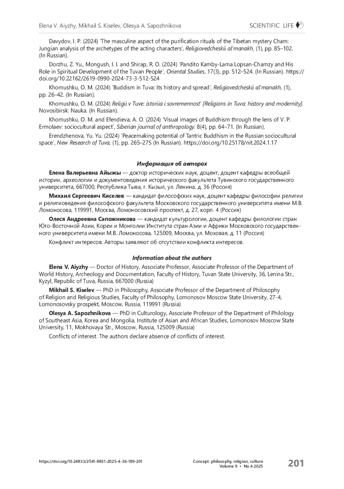 13. Хомушку О. М., Эфендиева А. О. Визуальные образы буддизма через объектив В. П. Ермолаева: социокультурный аспект // Сибирский антропологический журнал. - 2024. - Т. 8, № 4. - С. 64-71.