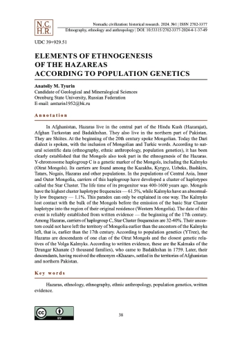 16. Темирханов, Л. (1968). О некоторых спорных вопросах этнической истории хазарейского народа. Советская этнография. 1. 93-94.