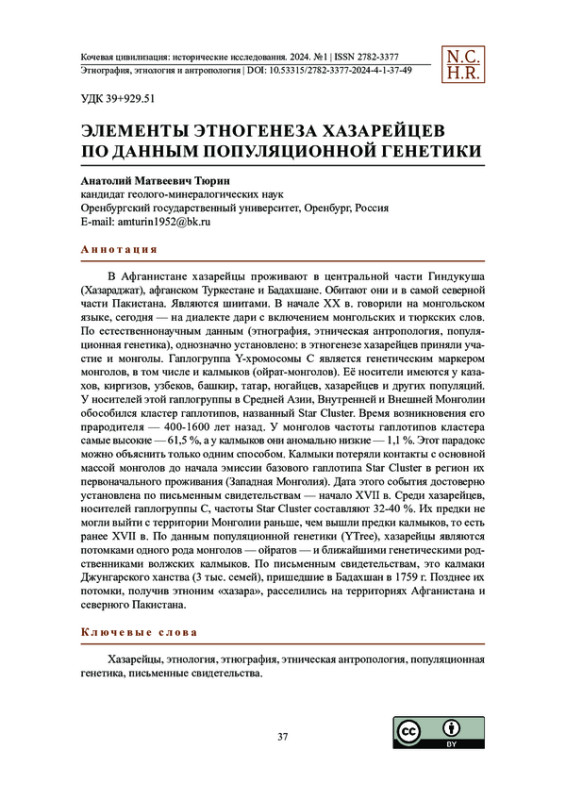 18. Тюрин, А.М. (2017). Калмыки, караногайцы, кубанские ногайцы и крымские татары - геногеографический и геногенеалогический аспекты. Журнал фронтирных исследований. 2. 7-29.