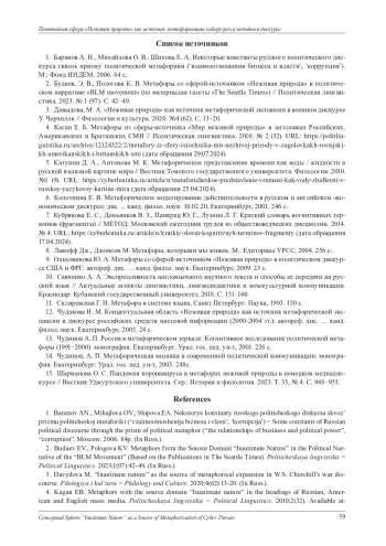 4. Каган Е. Б. Метафоры из сферы-источника “Мир неживой природы” в заголовках Российских, Американских и Британских СМИ // Политическая лингвистика. 2010. № 2 (32). URL: https://politlin-guistika.ru/archive/12124322/2/metafory-iz-sfery-istochnika-mir-nezhivoj-prirody-v-zagolovkakh-rossijski-kh-amerikanskikh-i-britanskikh-smi (дата обращения 29.07.2024).