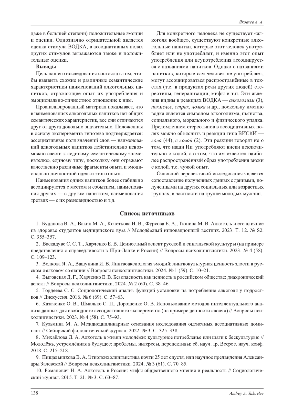 9. Пищальникова В. А. Этнопсихолингвистика почти 25 лет спустя, или научное предвидения Александры Залевской // Вопросы психолингвистики. 2024. № 3 (61). С. 70-85. EDN: KFBVRW