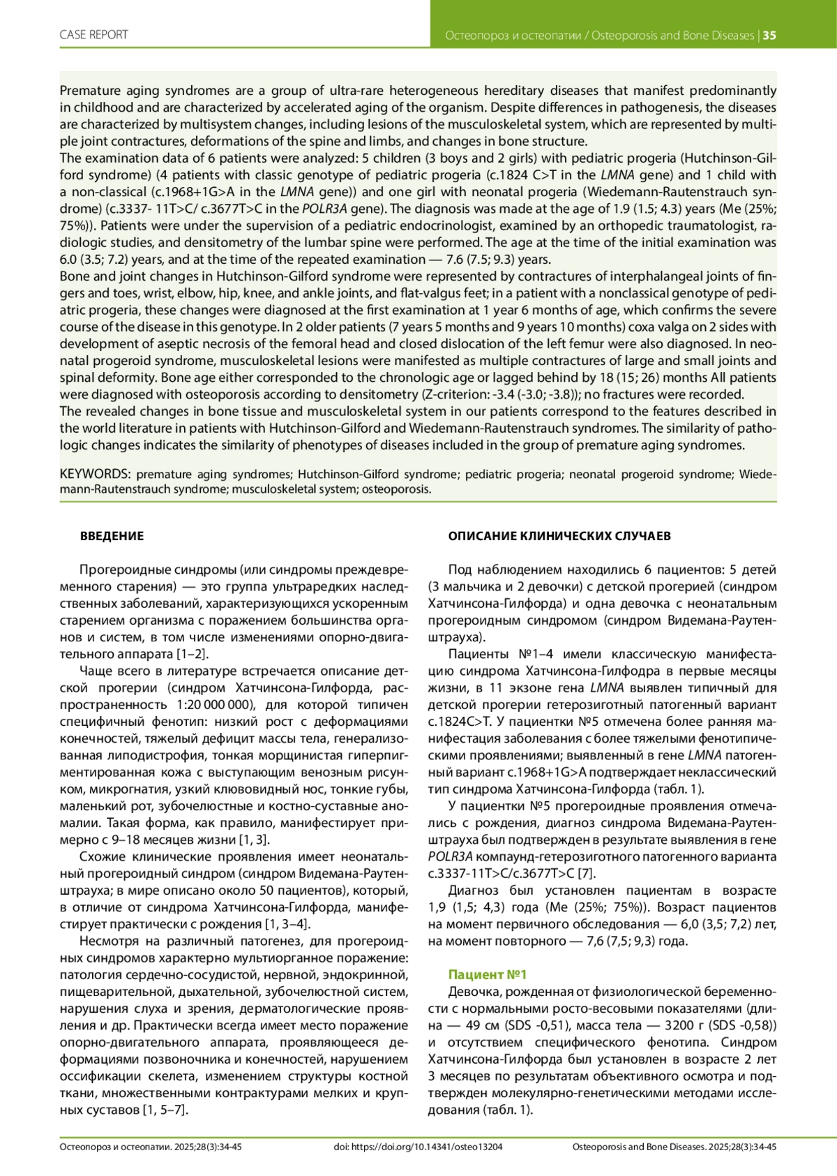 Статья: ОСОБЕННОСТИ ОПОРНО-ДВИГАТЕЛЬНОГО АППАРАТА И КОСТНОЙ ТКАНИ У ПАЦИЕНТОВ С СИНДРОМАМИ ПРЕЖДЕВРЕМЕННОГО СТАРЕНИЯ (2025)