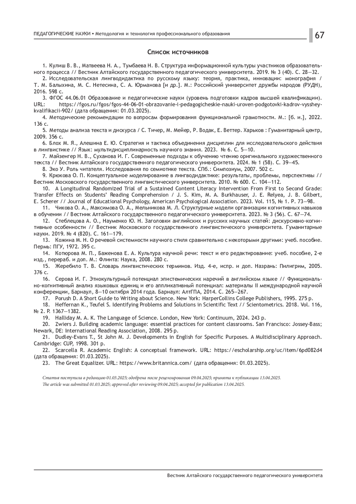 22. Scarcella R. Academic English: A conceptual framework. URL: https://escholarship.org/uc/item/6pd082d4 (дата обращения: 01.03.2025).