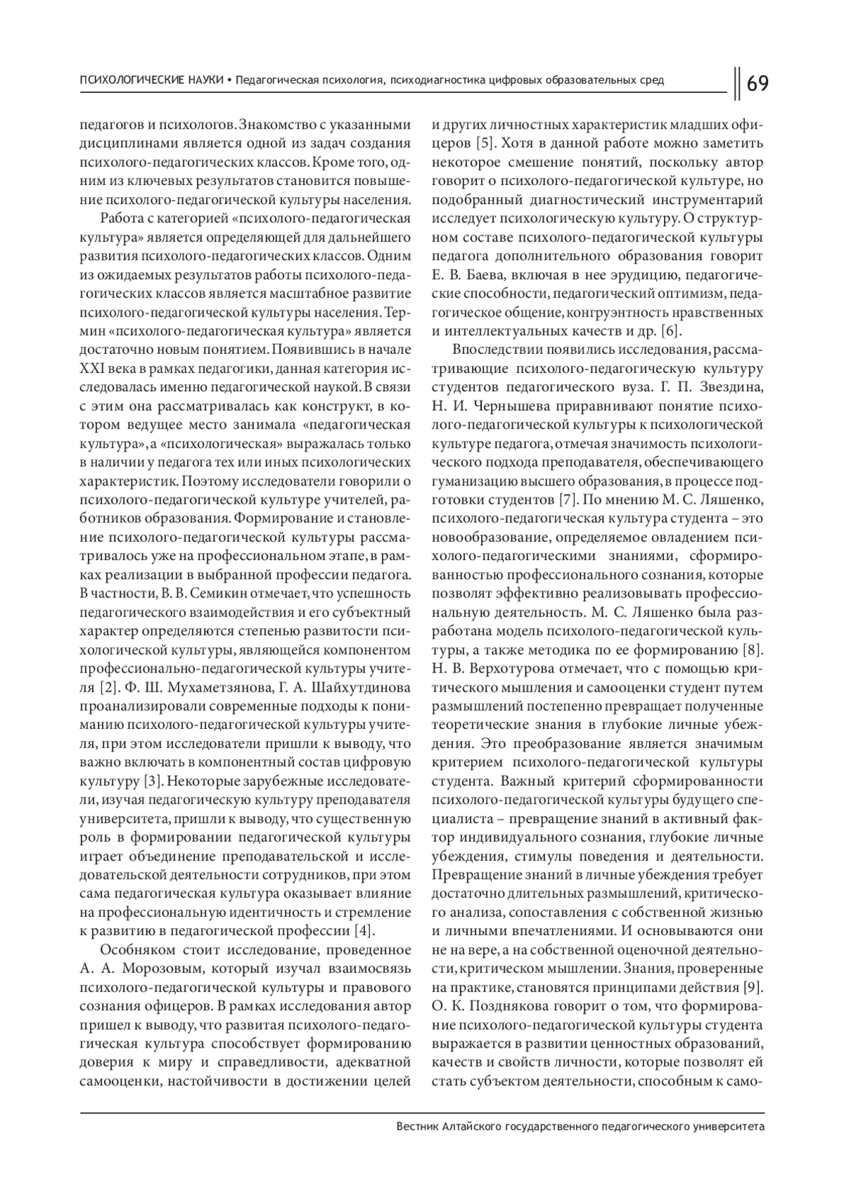 10. Позднякова О. К. О формировании психолого-педагогической культуры будущего учителя // Инновационное развитие профессионального образования. 2019. № 4 (24). С. 25-32. EDN: JSCMSH