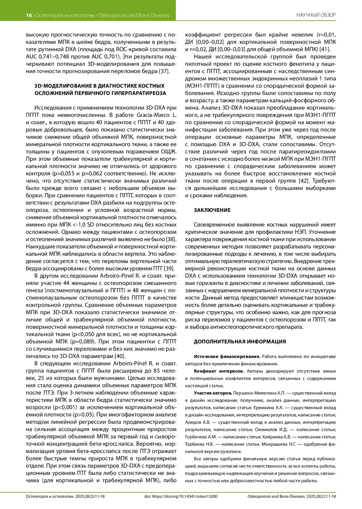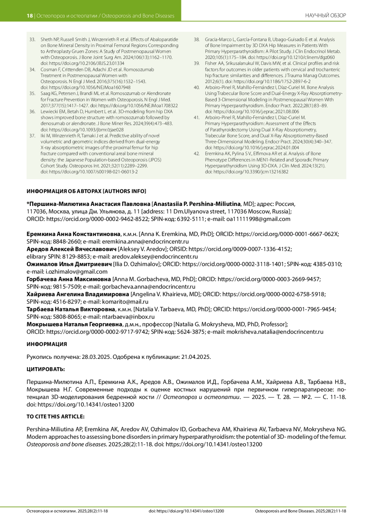 42. Eremkina AK, Pylina S V., Elfimova AR et al. Analysis of Bone Phenotype Differences in MEN1-Related and Sporadic Primary Hyperparathyroidism Using 3D-DXA. J Clin Med. 2024;13(21). DOI: 10.3390/jcm13216382
