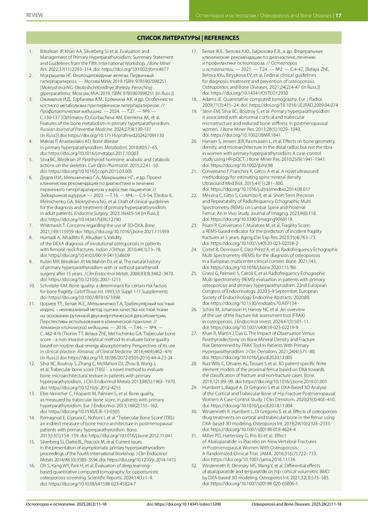 17. Belaya ZhE, Belova KYu, Biryukova EV, et al. Federal clinical guidelines for diagnosis, treatment and prevention of osteoporosis. Osteoporosis and Bone Diseases. 2021;24(2):4-47 (In Russ.). DOI: 10.14341/OSTEO12930