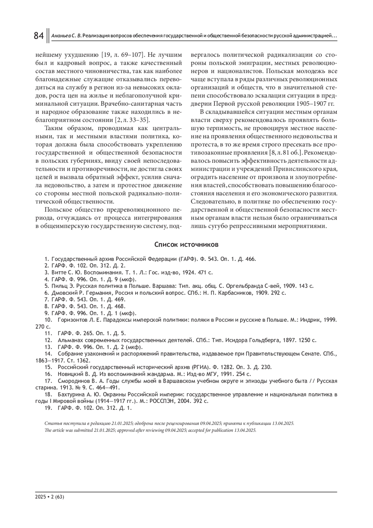 В современных условиях обострения международной ситуации на западных рубежах Российского государства изучение исторического опыта деятельности органов власти по обеспечению государственной и общественной безопасности приобрело особую актуальность, что ставит не только перед исследователями, но и перед представителями власти задачу по извлечению исторических уроков в схожих условиях.