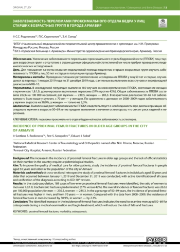10. Романов Г.Н., Чернянин И.Ю., Руденко Э.В., Лесняк О.М., Закроева А.Г. Эпидемиология переломов проксимального отдела бедренной кости в Республике Беларусь // Вестник травматологии и ортопедии им Н.Н. Приорова. - 2017. - № 3. - С. 32-36.