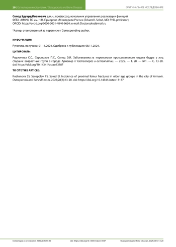 7. Ершова О.Б., Белова К.Ю., Ганерт О.А., Романова М.А., Синицына О.С. Исход остеопоротического перелома проксимального отдела бедра. // Клиническая геронтология. - 2014. - Т.20. - №3-4. - С. 3-8.