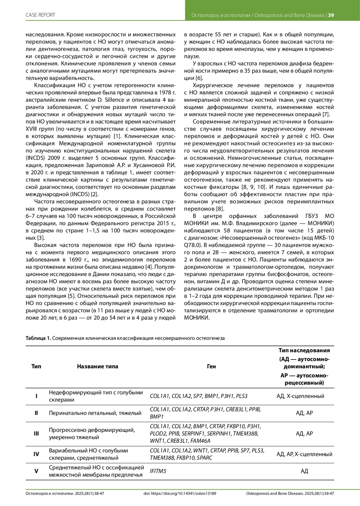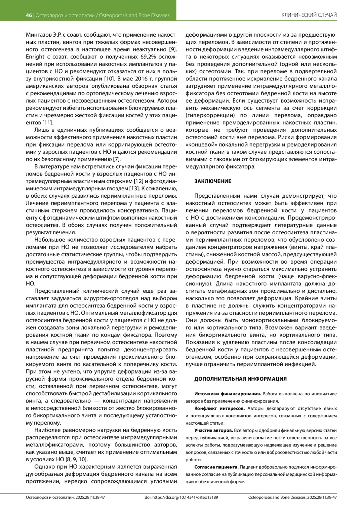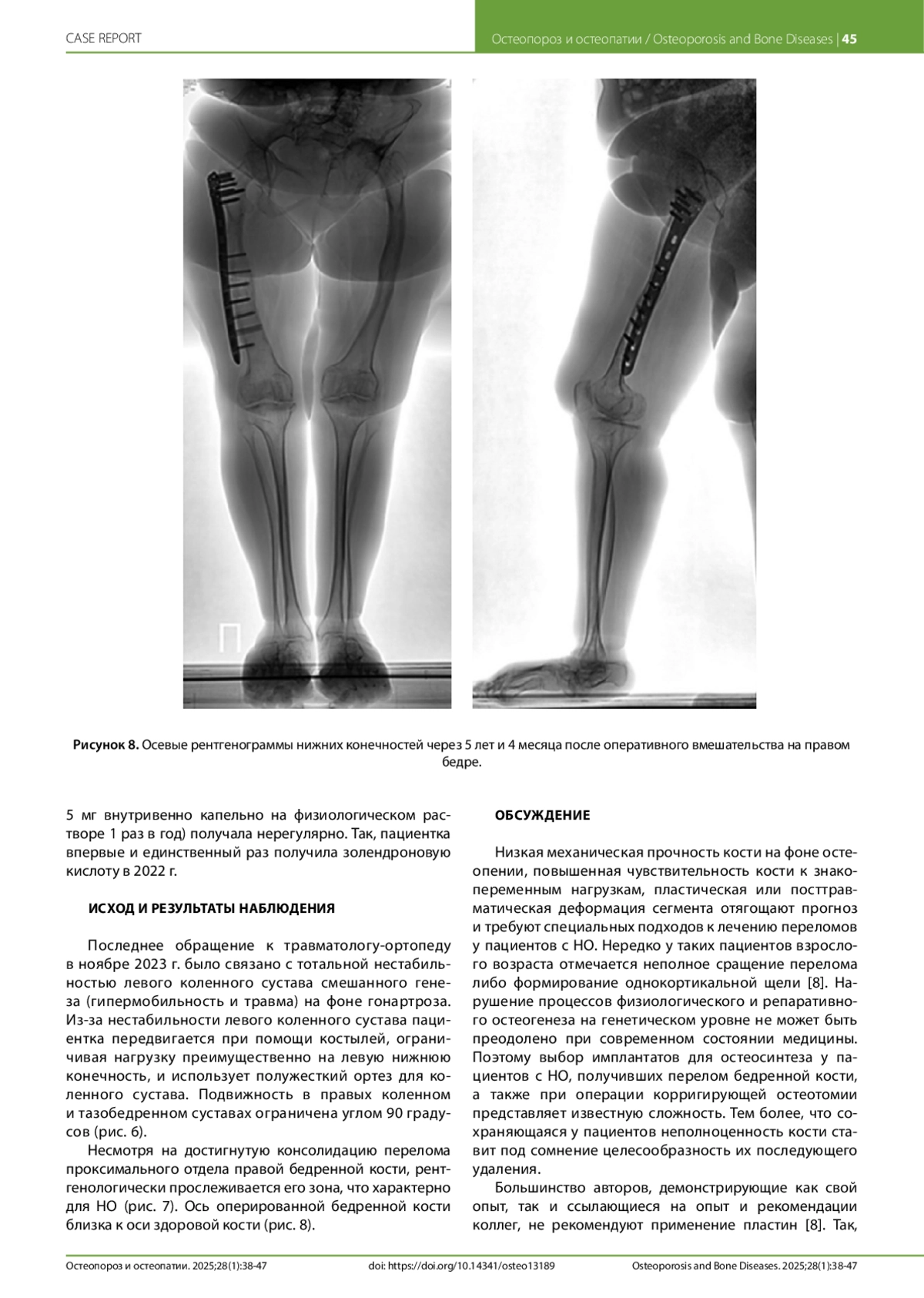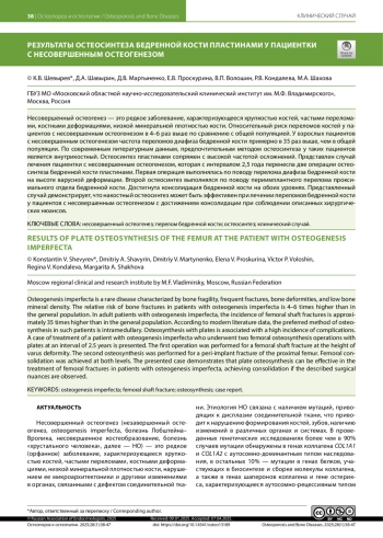 Статья: РЕЗУЛЬТАТЫ ОСТЕОСИНТЕЗА БЕДРЕННОЙ КОСТИ ПЛАСТИНАМИ У ПАЦИЕНТКИ С НЕСОВЕРШЕННЫМ ОСТЕОГЕНЕЗОМ (2025)