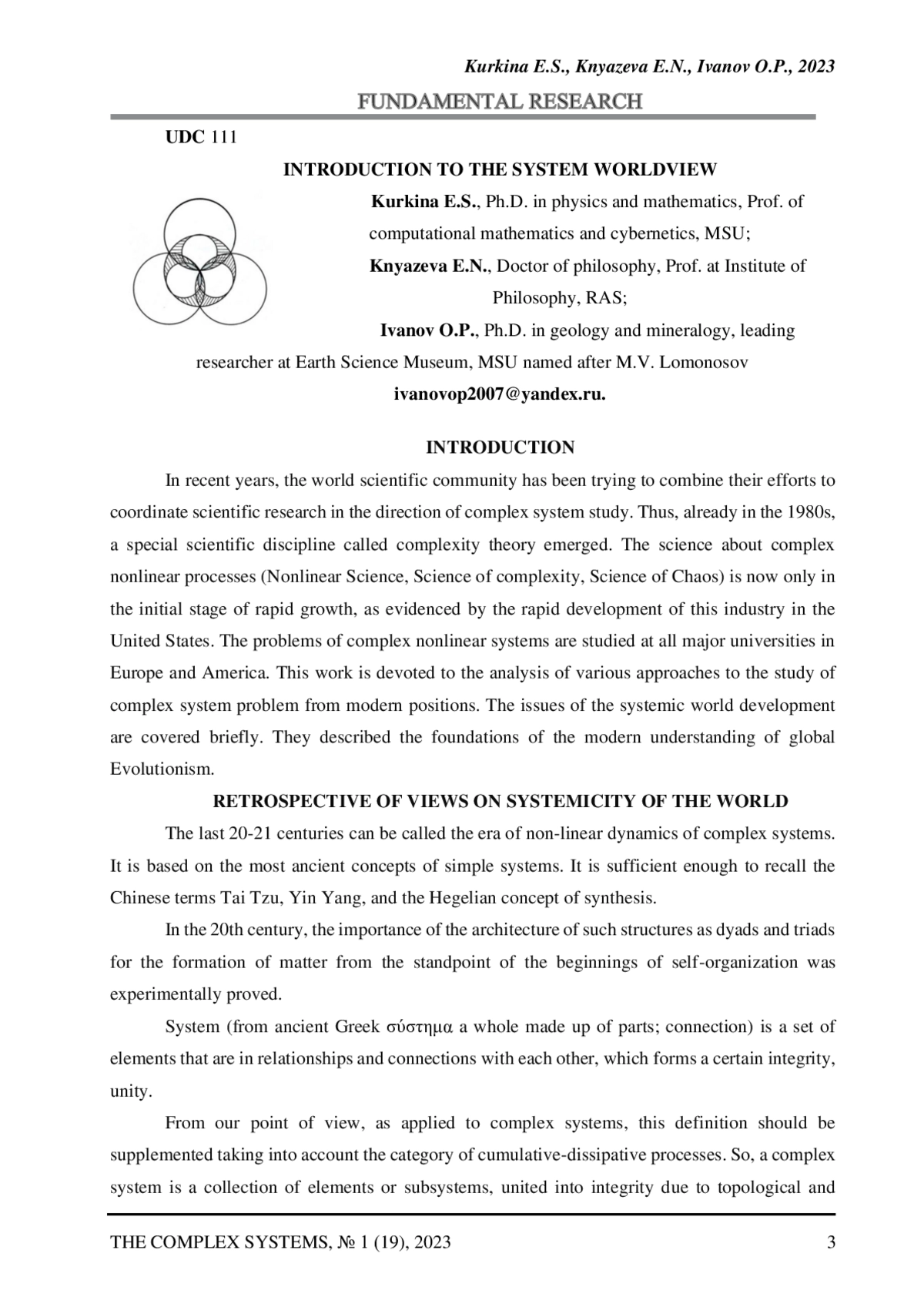 4. Ivanov O.P. The evolution of worldview from triads to complex systems M., Delphis, 2014, No. 3 (79), 65-78.