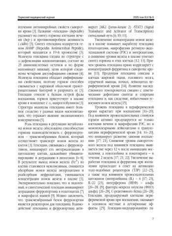 36. Wrighting D.M., Andrews N.C.Interleukin-6 induces hepcidin expression through STAT3. Blood. 2006; 108 (9): 3204-3209. DOI: 10.1182/blood-2006-06-027631