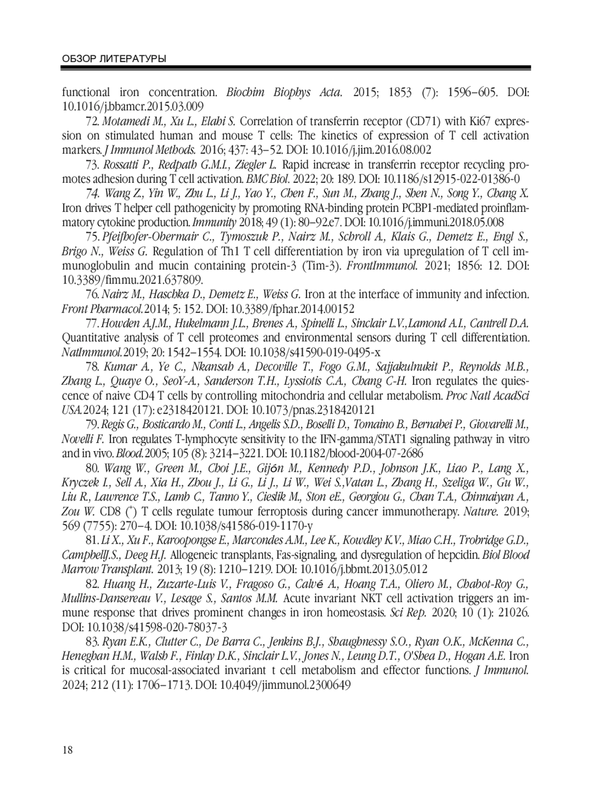 72. Motamedi M., Xu L., Elahi S. Correlation of transferrin receptor (CD71) with Ki67 expression on stimulated human and mouse T cells: The kinetics of expression of T cell activation markers. J Immunol Methods. 2016; 437: 43-52. DOI: 10.1016/j.jim.2016.08.002