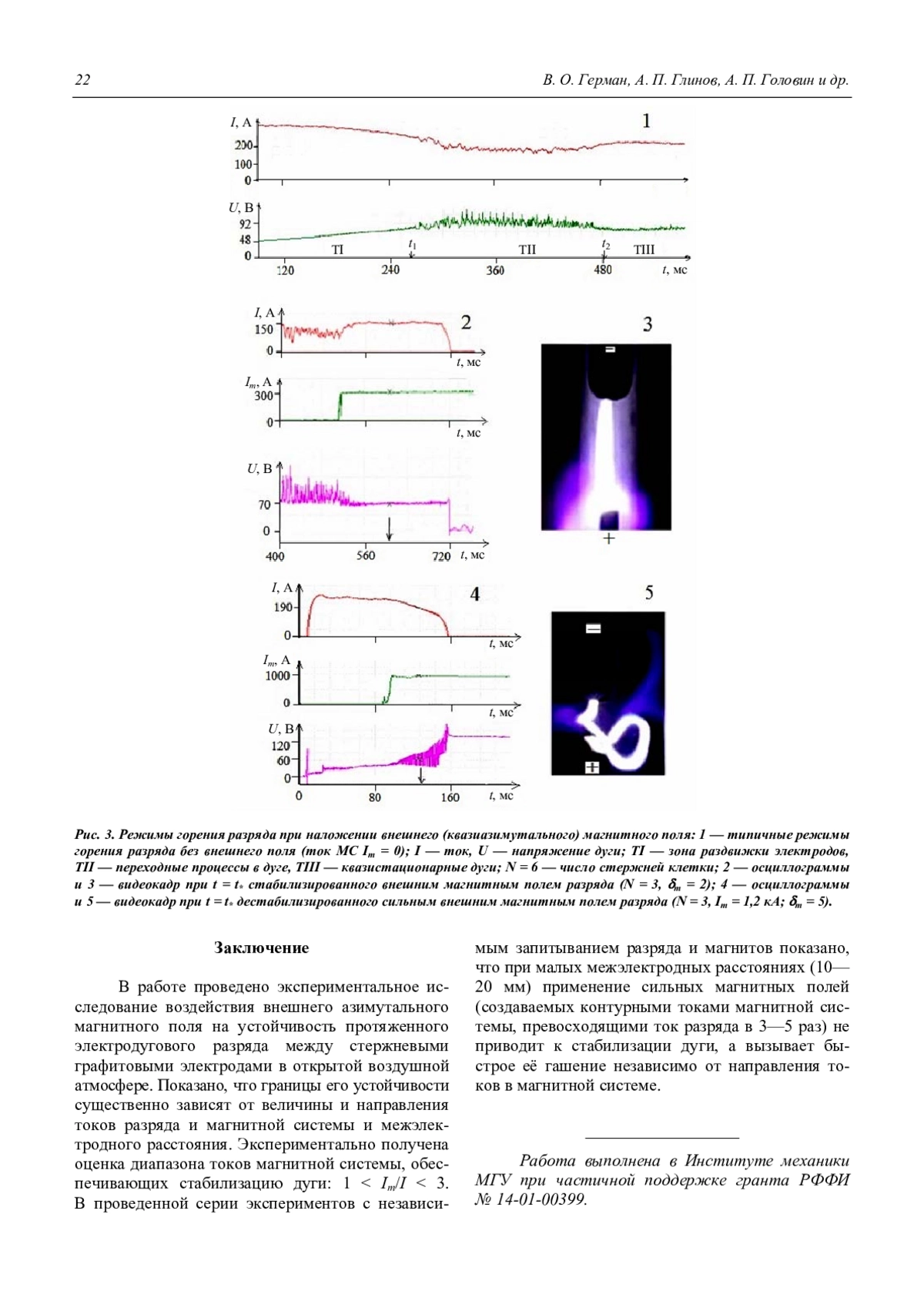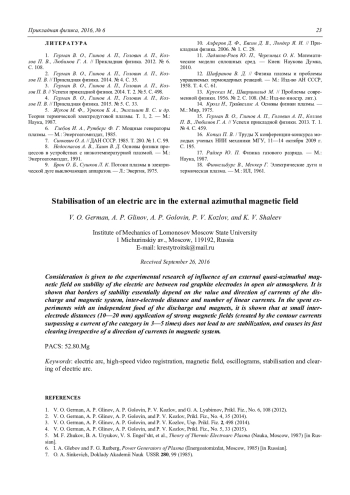 V. О. German, А. P. Glinov, А. P. Golovin, P. V. Kozlov, and K. V. Shaleev Stabilisation of an electric arc in the external azimuthal magnetic field 18